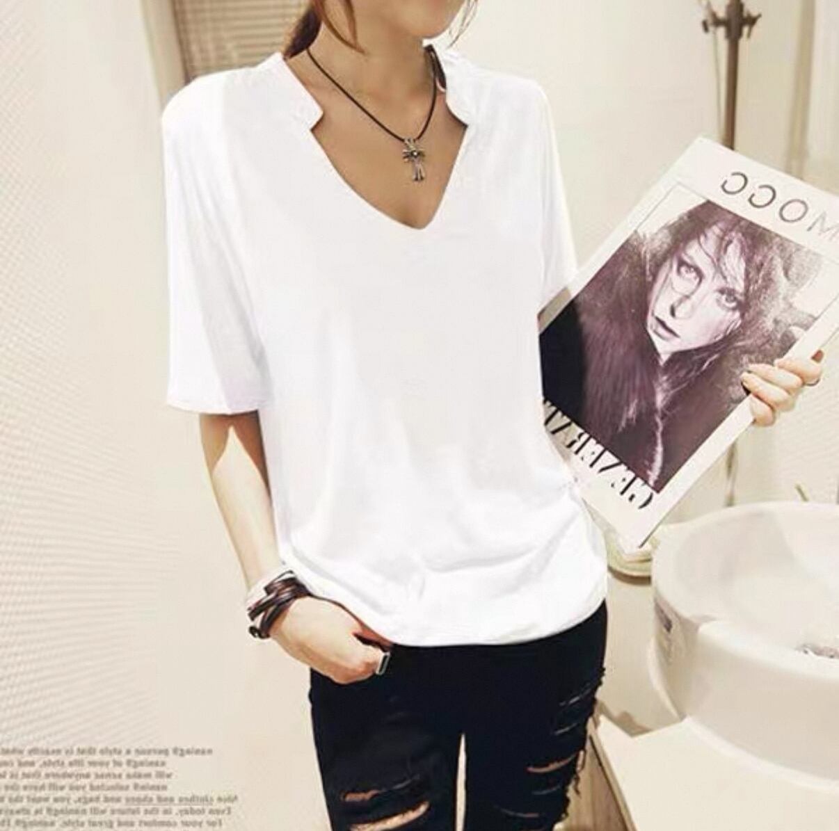 カジュアル 大Vネック シンプル 無地