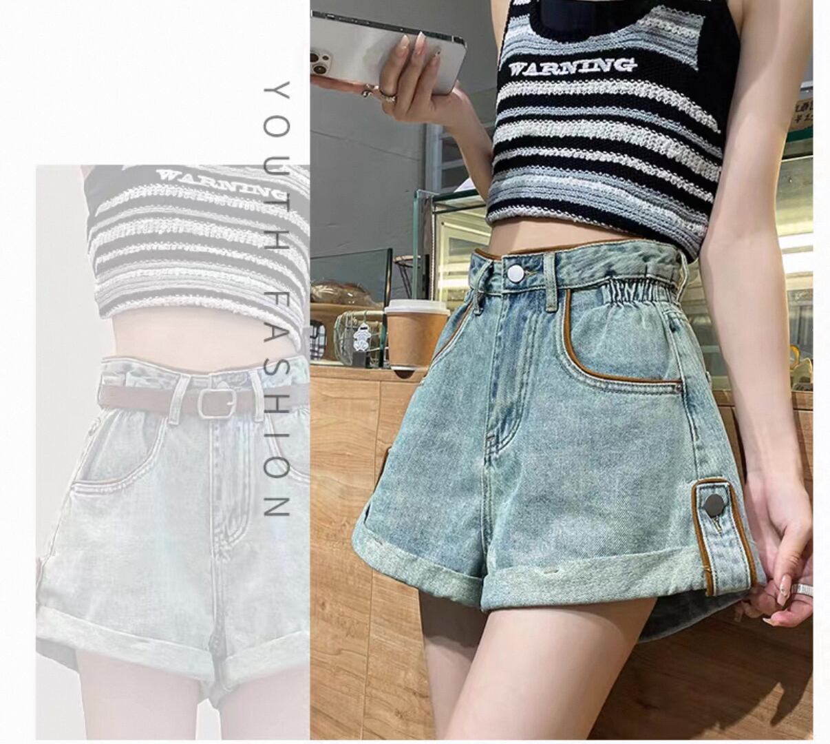 毎日のスタイルにぴったりな【人気】ロールエッジデニムショートパンツ ハイウエスト!このアイテムは、トレンド感満載のロールエッジデザインが特徴で、カジュアルなお出かけからリラックスした日常まで、さまざまなシーンで活躍する一品です。穿くことで、あなたのスタイルを一層引き立てます!