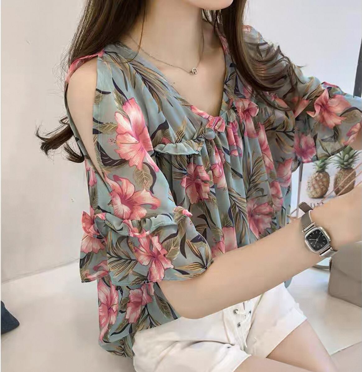 毎日のスタイルにぴったりな【新作】フレアスリーブオフショルダー 花柄スリムシャツ おしゃれ!このアイテムは、華やかな花柄とトレンド感あふれるフレアスリーブが特徴で、様々なシーンで活躍する一品です!