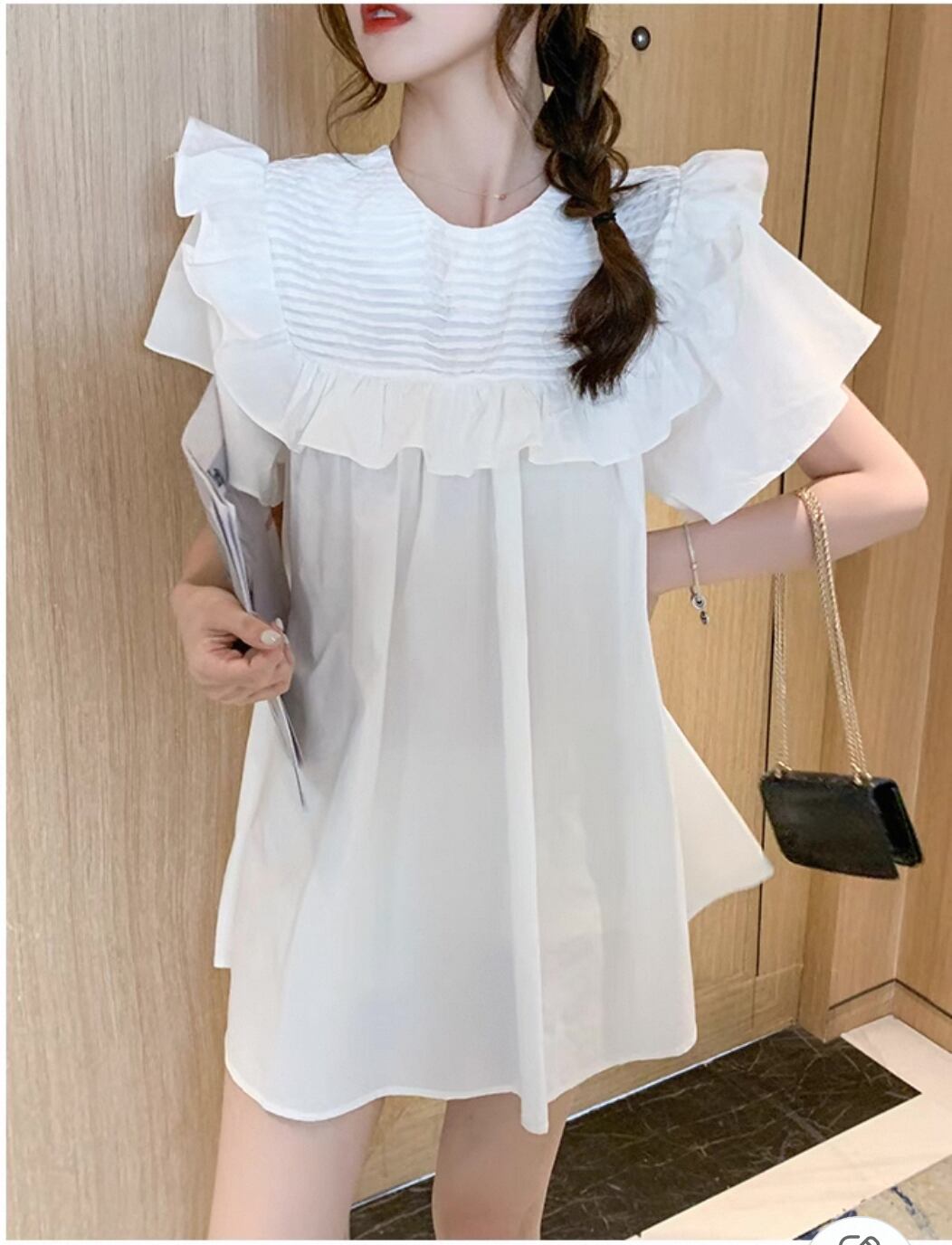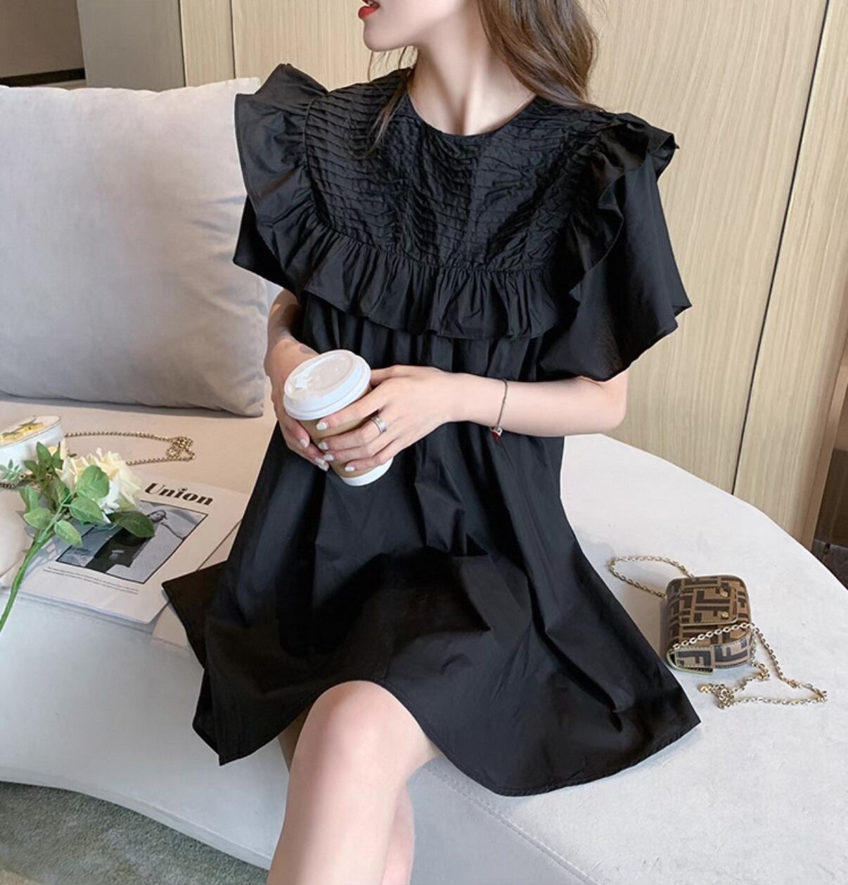 ・襟ニッチデザインが、シンプルながらもアクセントを添え、カジュアルさとおしゃれさを両立させます。特別な日やお家でのリラックスタイムにも最適なスタイルです!