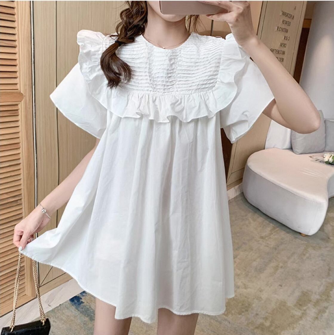 ゆったりワンピース 襟ニッチデザイン