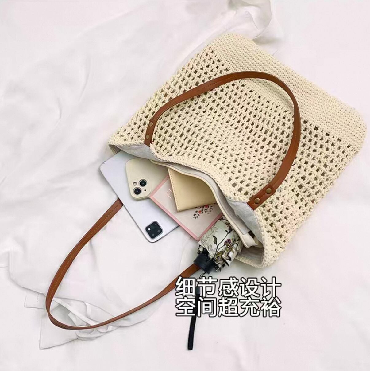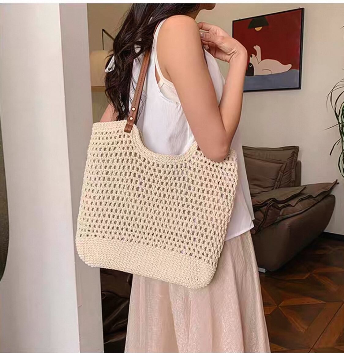 ・夏らしい軽やかな草編みデザインが、ビーチやピクニック、デイリーユースに最適なスタイルを演出します!爽やかな印象を与え、季節感を楽しむことができるでしょう。