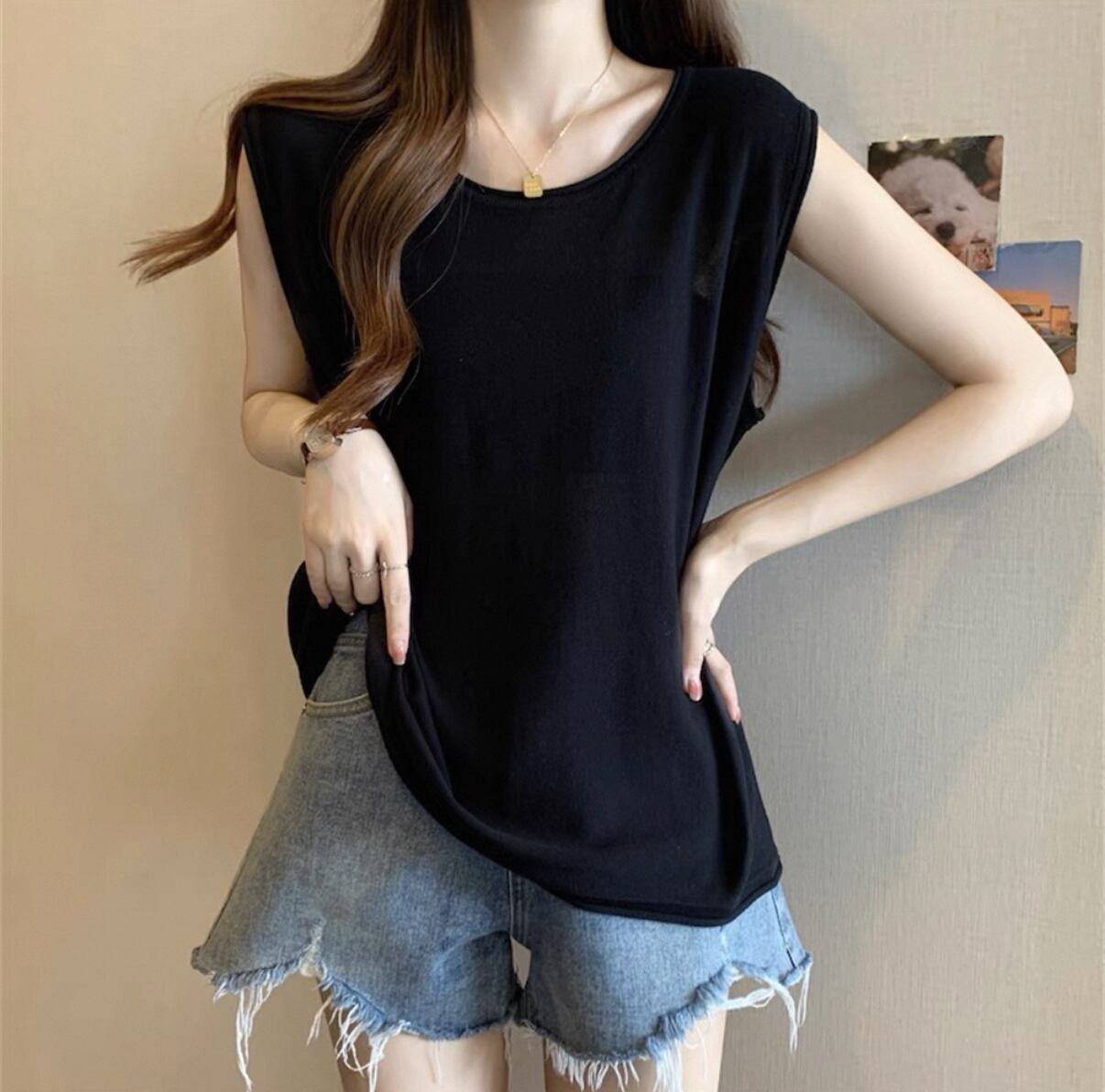 毎日のスタイルにぴったりな【アイスシルクニット】万能性ノースリーブTシャツ シンプル 登場!このアイテムは、涼しげなアイスシルク素材とシンプルなデザインが特徴で、さまざまなシーンであなたの魅力を引き立てる一品です!