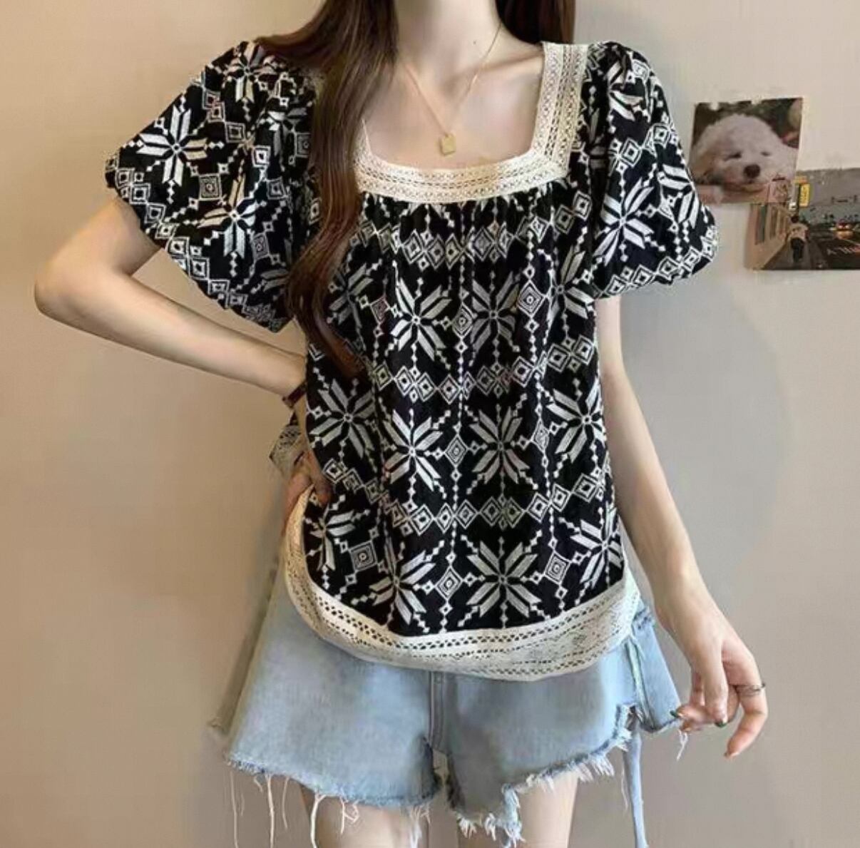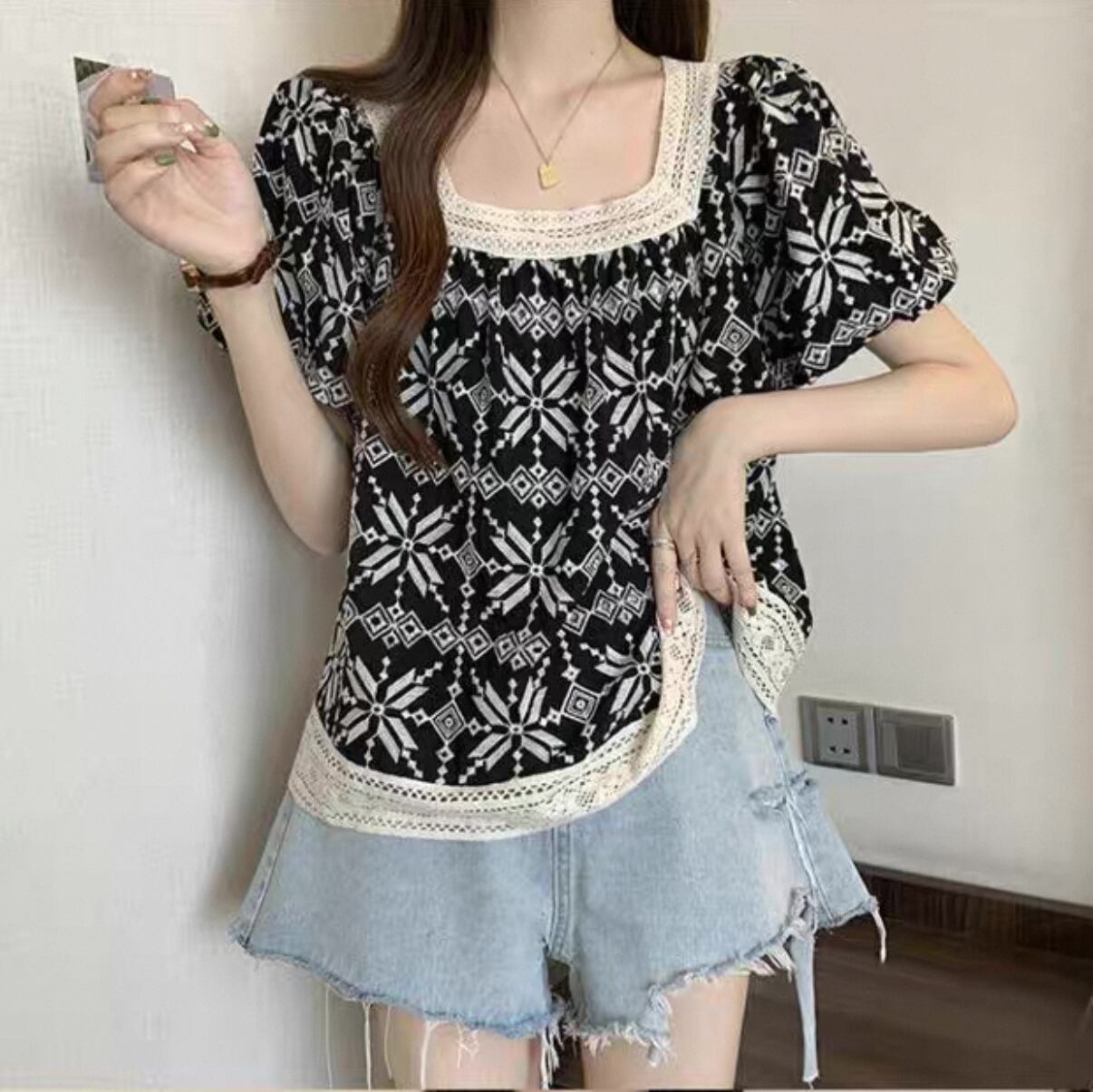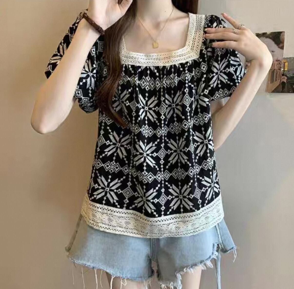 毎日のスタイルにぴったりな【フレンチTシャツ 洋風フレンチスクエアネック 休日コーデ】が登場!このアイテムは、洋風フレンチスクエアネックのデザインとリラックスした雰囲気が特徴で、休日のお出かけやカジュアルなシーンに最適な一品です!
