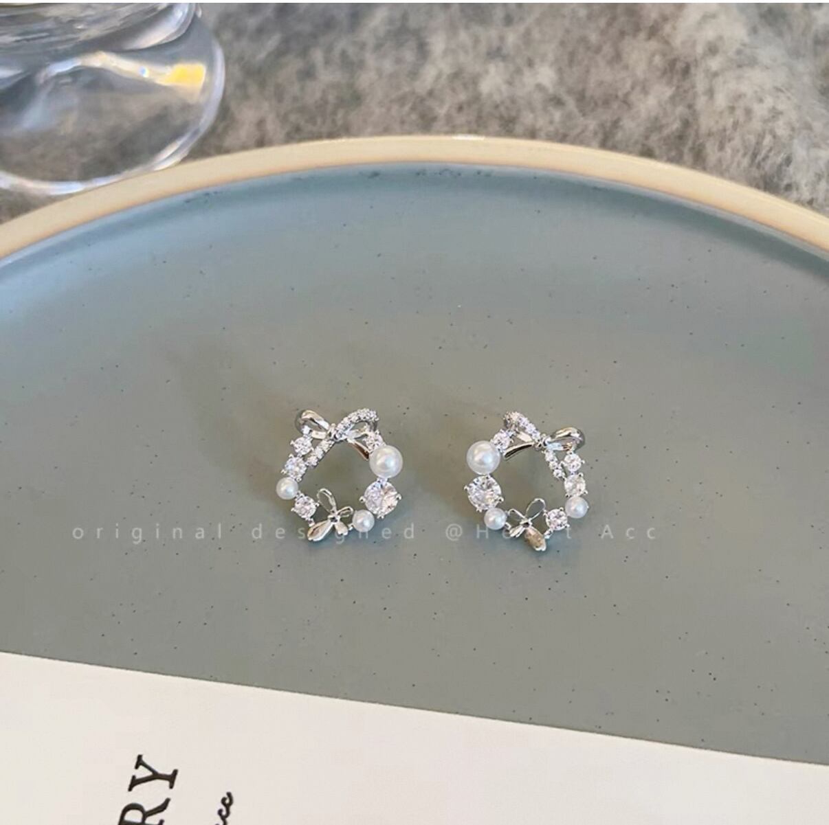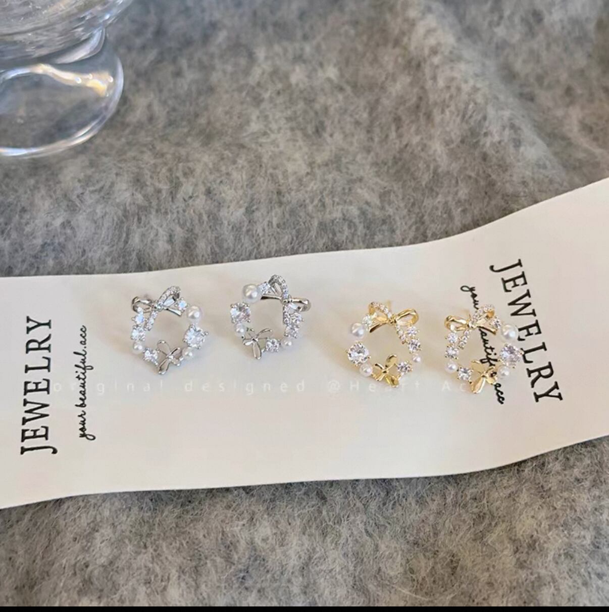・リボンと花輪をモチーフにしたデザインのこのピアスは、シンプルでありながらも独自の華やかさを放ちます。普段使いやお出かけの際にも、あなたのスタイルを引き立てるおしゃれなアイテムです!