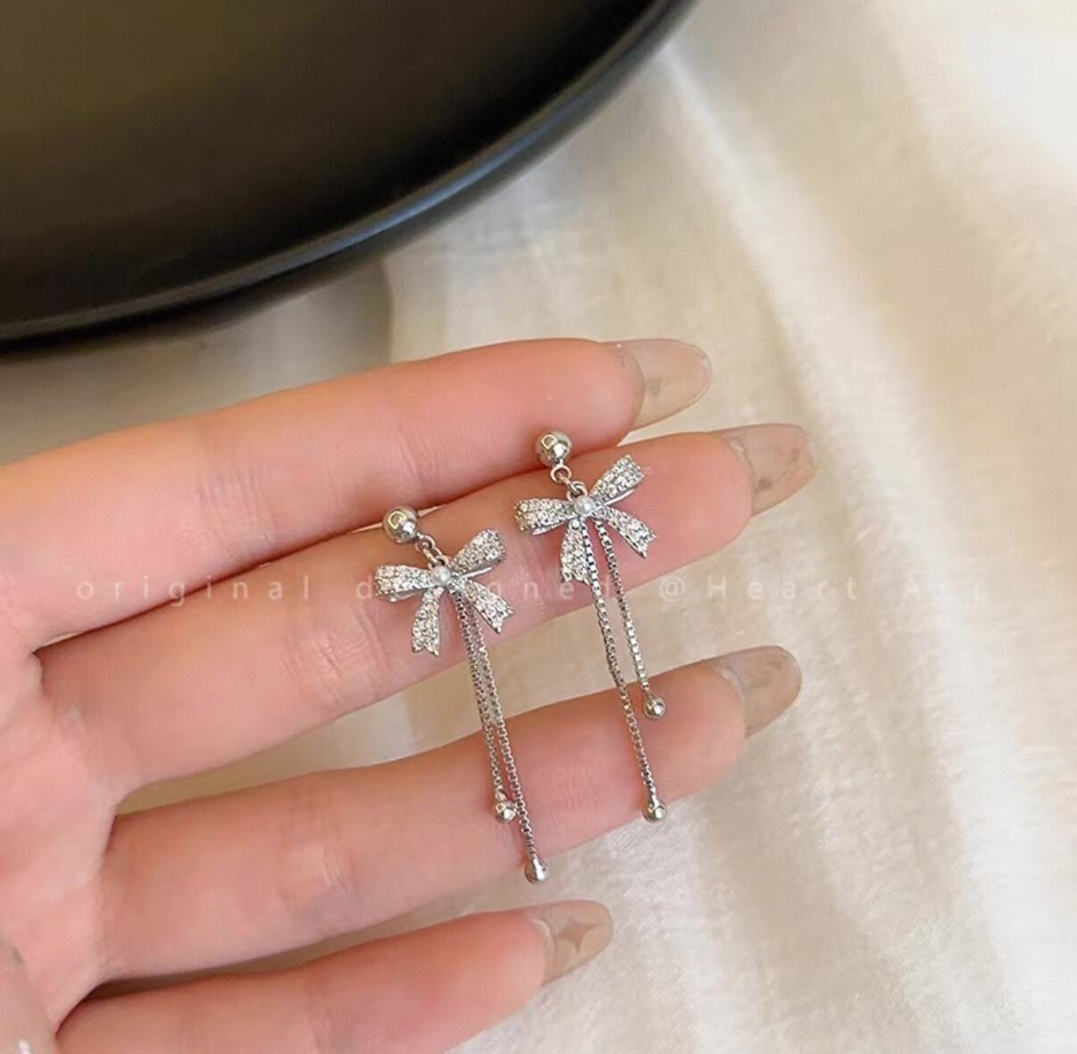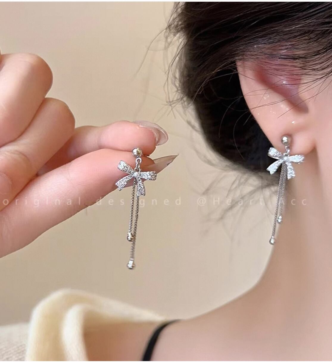 ・高品質な素材を使用しているため、軽やかで心地よい着用感を実現。耳元で揺れるリボン型のデザインは、動きに合わせて美しく輝き、スタイリッシュな印象を与えます!