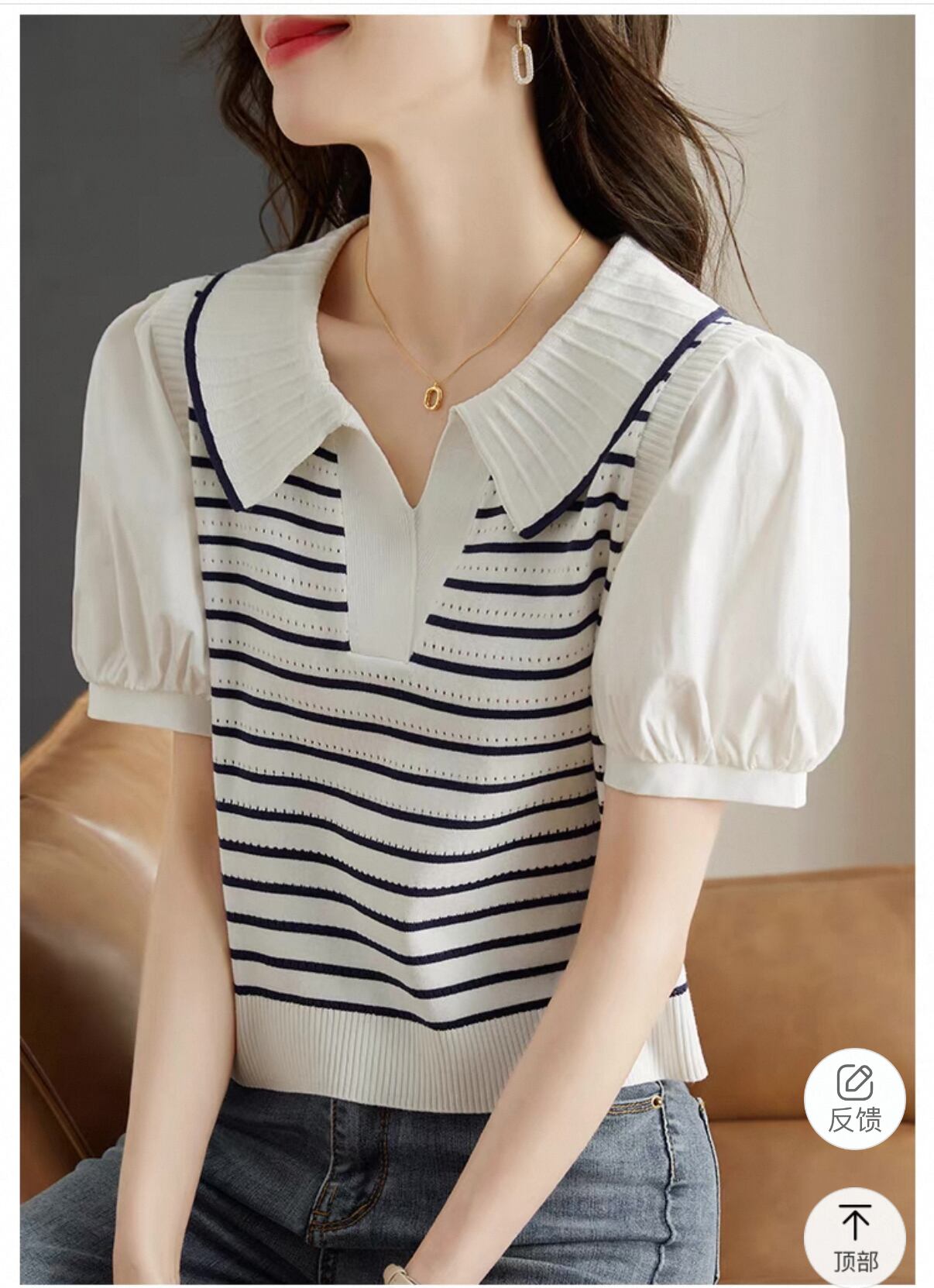 毎日のスタイルにぴったりな【ドールネックパフスリーブ ストライプTシャツ】が登場!このアイテムは、可愛らしいドールネックとパフスリーブのデザインが特長で、カジュアルながらも女性らしい魅力を引き立てます!