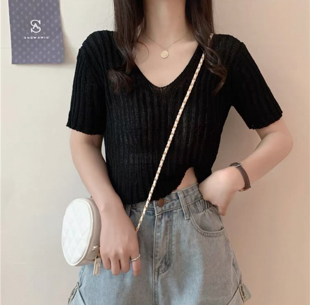 毎日のスタイルにぴったりな【アイスシルクニット ハイウエストTシャツ】が登場!このアイテムは、涼しげで滑らかなアイスシルク素材を使用し、ハイウエストのデザインが特徴のTシャツです。美しいシルエットを描くことができるので、さまざまなシーンであなたを引き立てます!