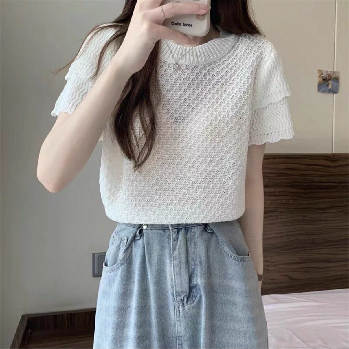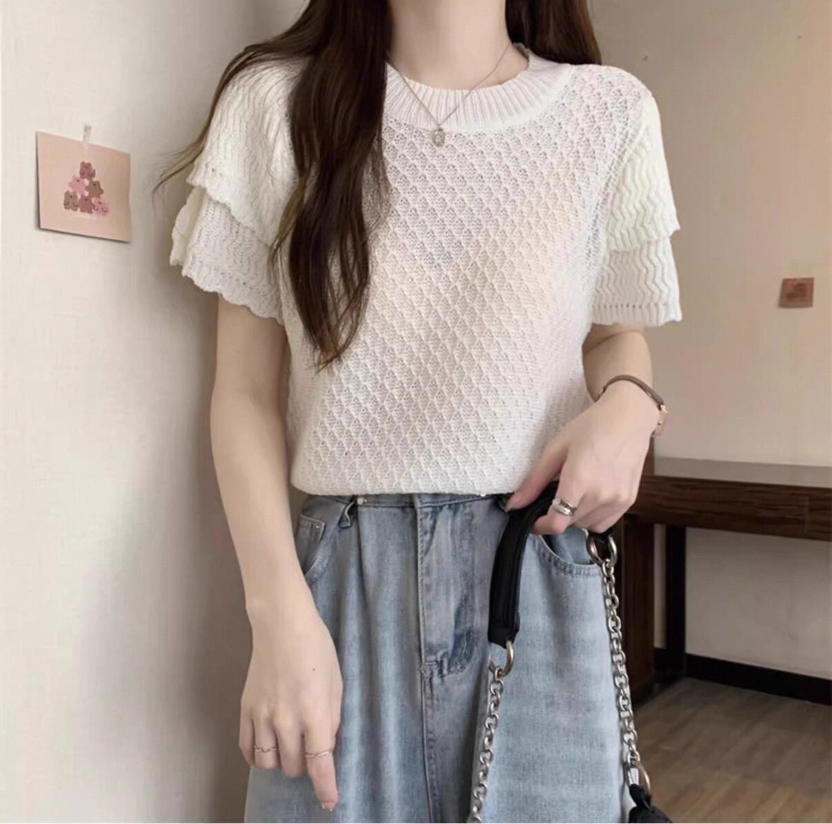 毎日のスタイルにぴったりな【ラウンドネック 半袖ニット】が登場!このアイテムは、シンプルでありながら洗練されたデザインの半袖ニットです。快適な着心地とともに、あなたの魅力を引き立てる一枚です!