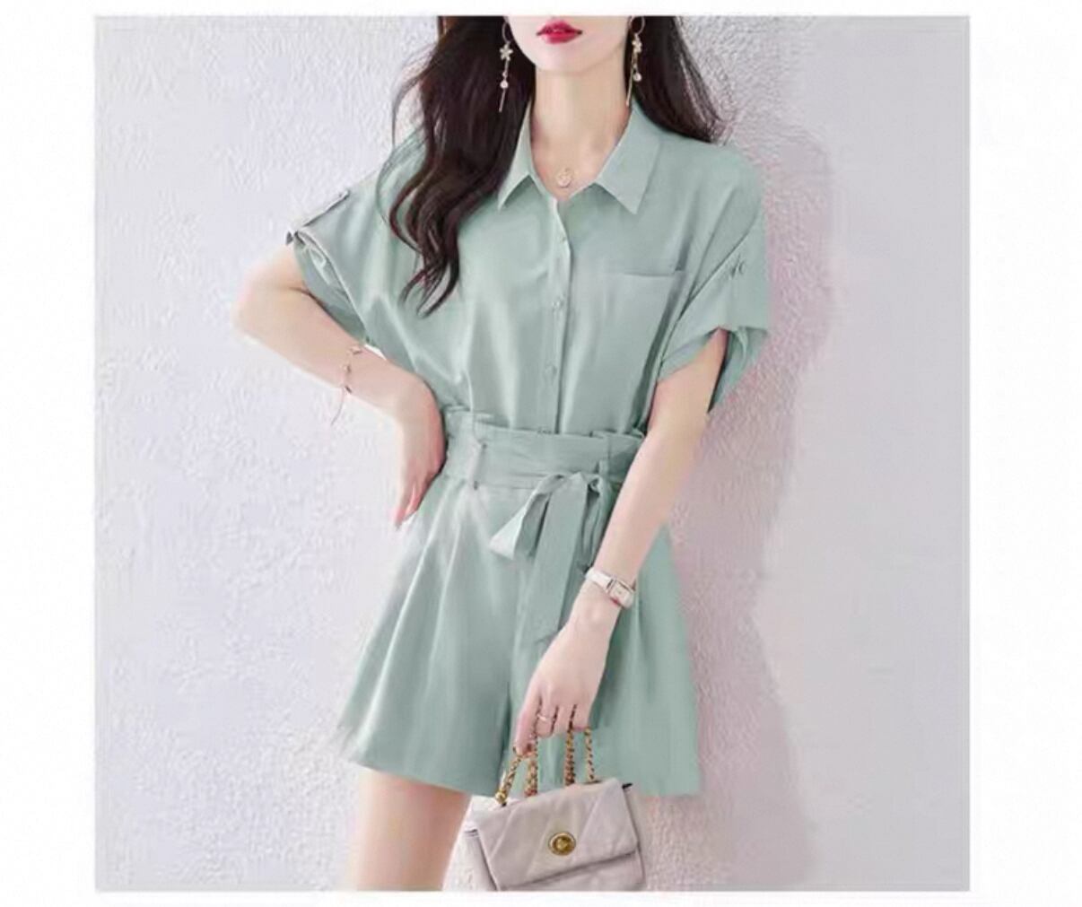 ・シャツとショートパンツがシームレスに組み合わさったこのセットアップは、コーディネートの手間を省き、スタイリッシュな印象を与えてくれます!軽やかな素材感は、暑い季節でも快適に過ごせるため、オフィスシーンからカジュアルなデートまで様々なシーンで活躍します。