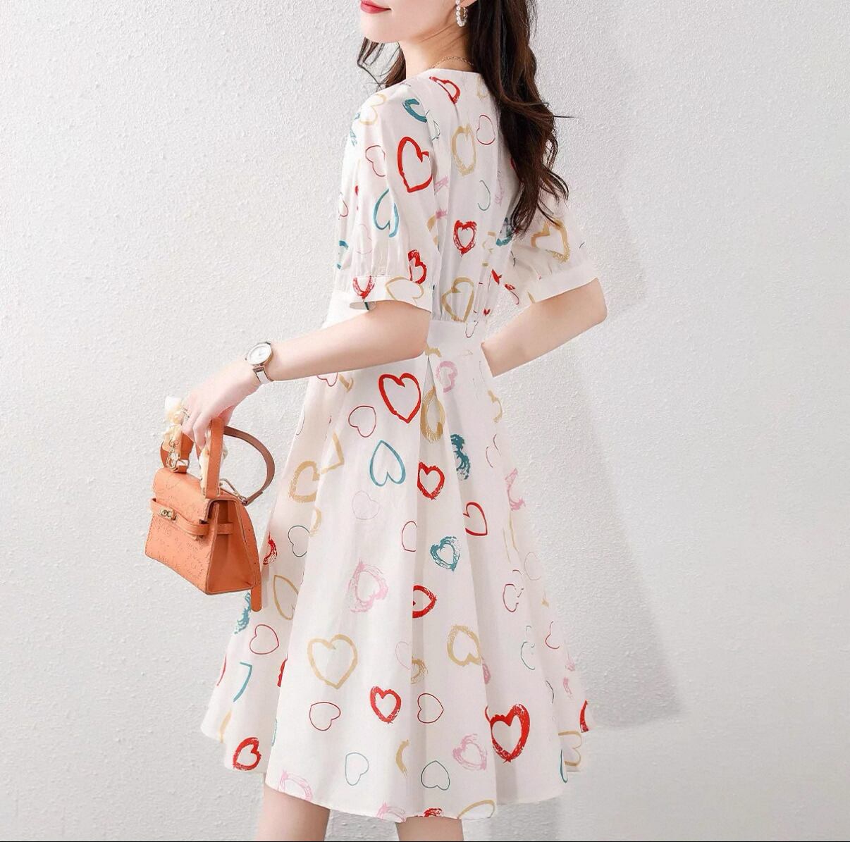 毎日のスタイルにぴったりな【ハート柄プリント スリム ワンピース】が新登場!このアイテムは、キュートなハート柄プリントとスリムなシルエットが特徴で、さまざまなシーンで大活躍します!