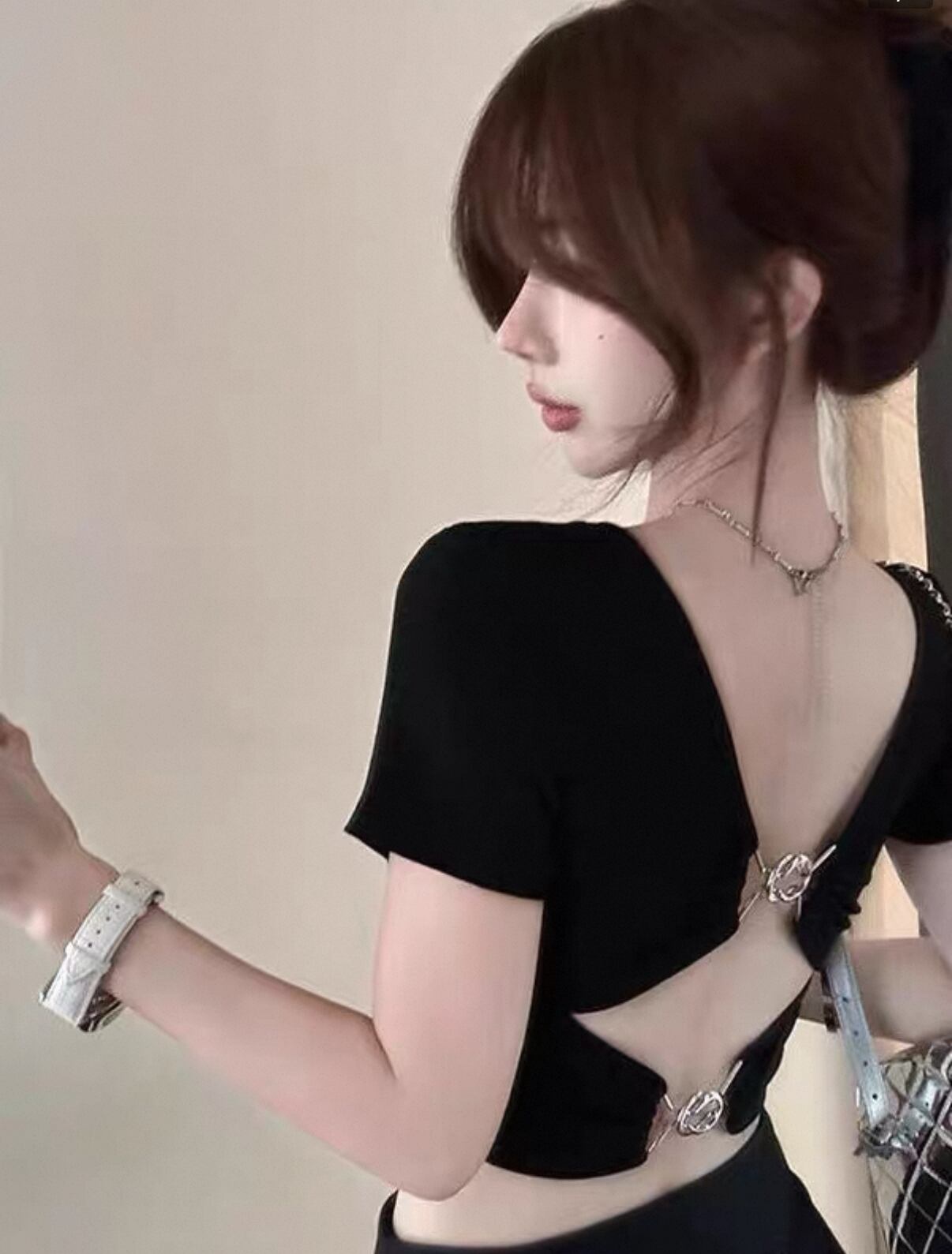 ・背中が大胆に開いたデザインが印象的なこのTシャツは、軽やかで通気性の良い素材を使用しており、温かい季節に最適です!カジュアルなデイリースタイルや友人とのお出かけ時など、多彩なシーンで活躍します。