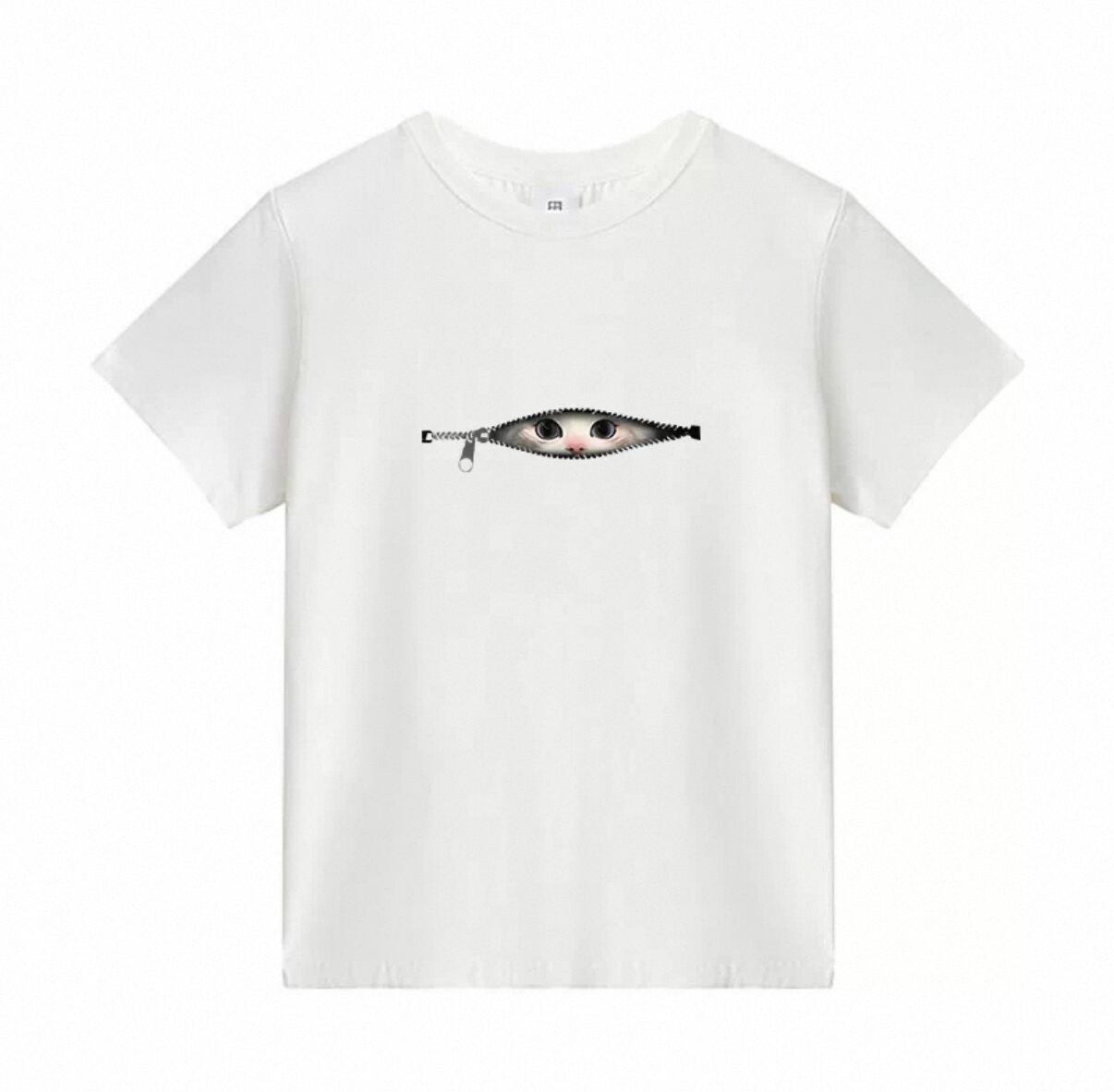 ・子猫が覗いている可愛いプリントが施されたこのTシャツは、カジュアルでありながらも遊び心満載の一枚です!柔らかい素材は着心地が良く、普段使いやお出かけ時にも大活躍します。