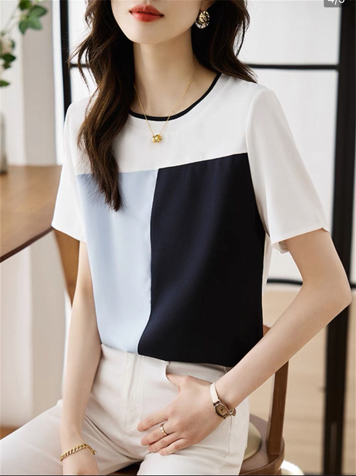 フランス洋風カラー シフォンTシャツ