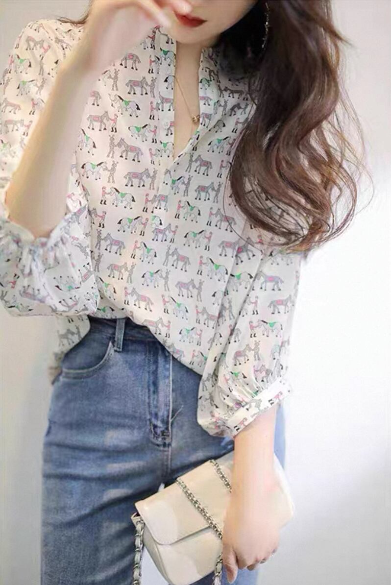 新たなシーズンにぴったりな【柄シャツ 馬柄 シフォンシャツ 万能シャツ】が登場!このアイテムは、かわいらしい馬柄と軽やかなシフォン素材が特徴で、あなたのスタイルを一層引き立てます!