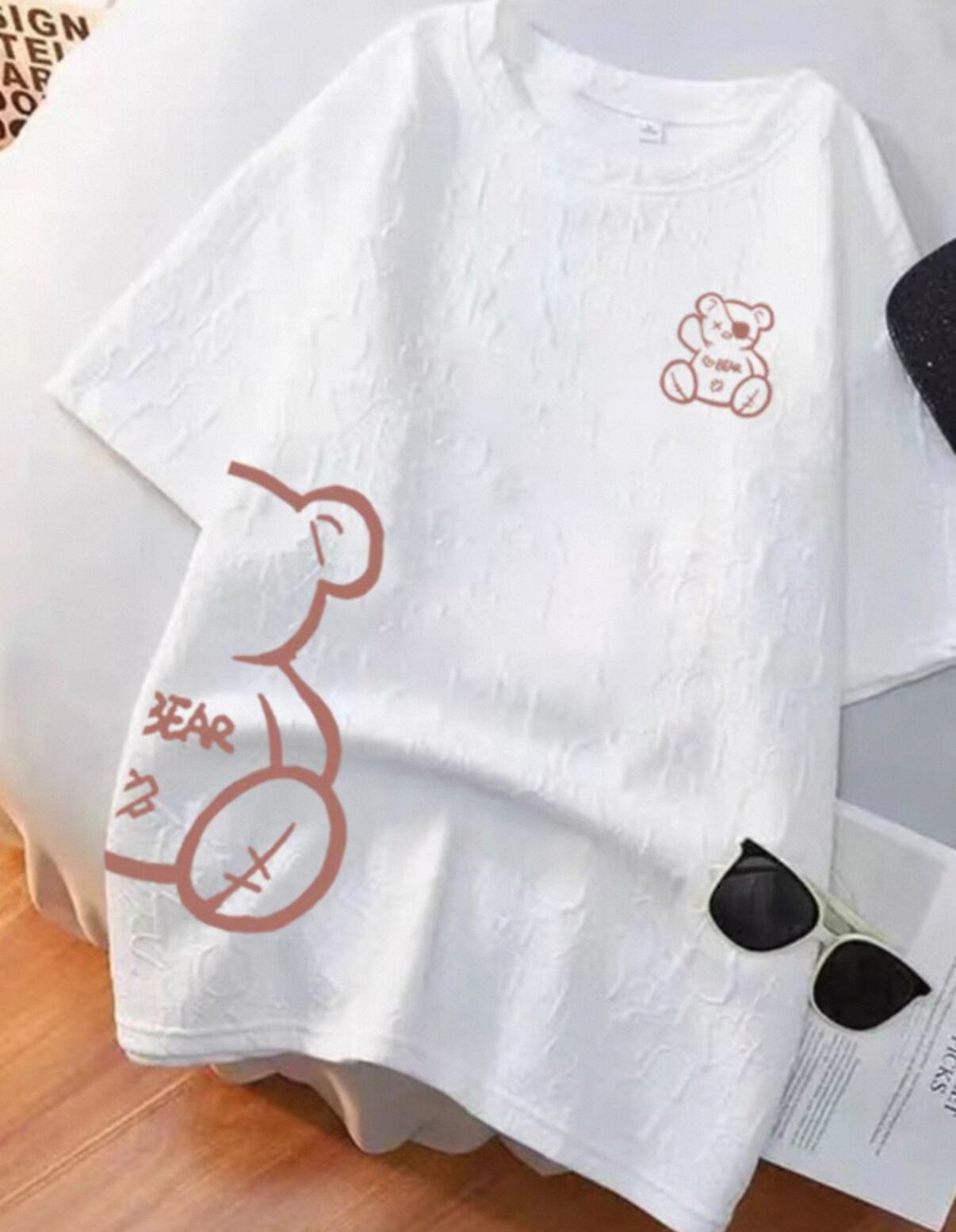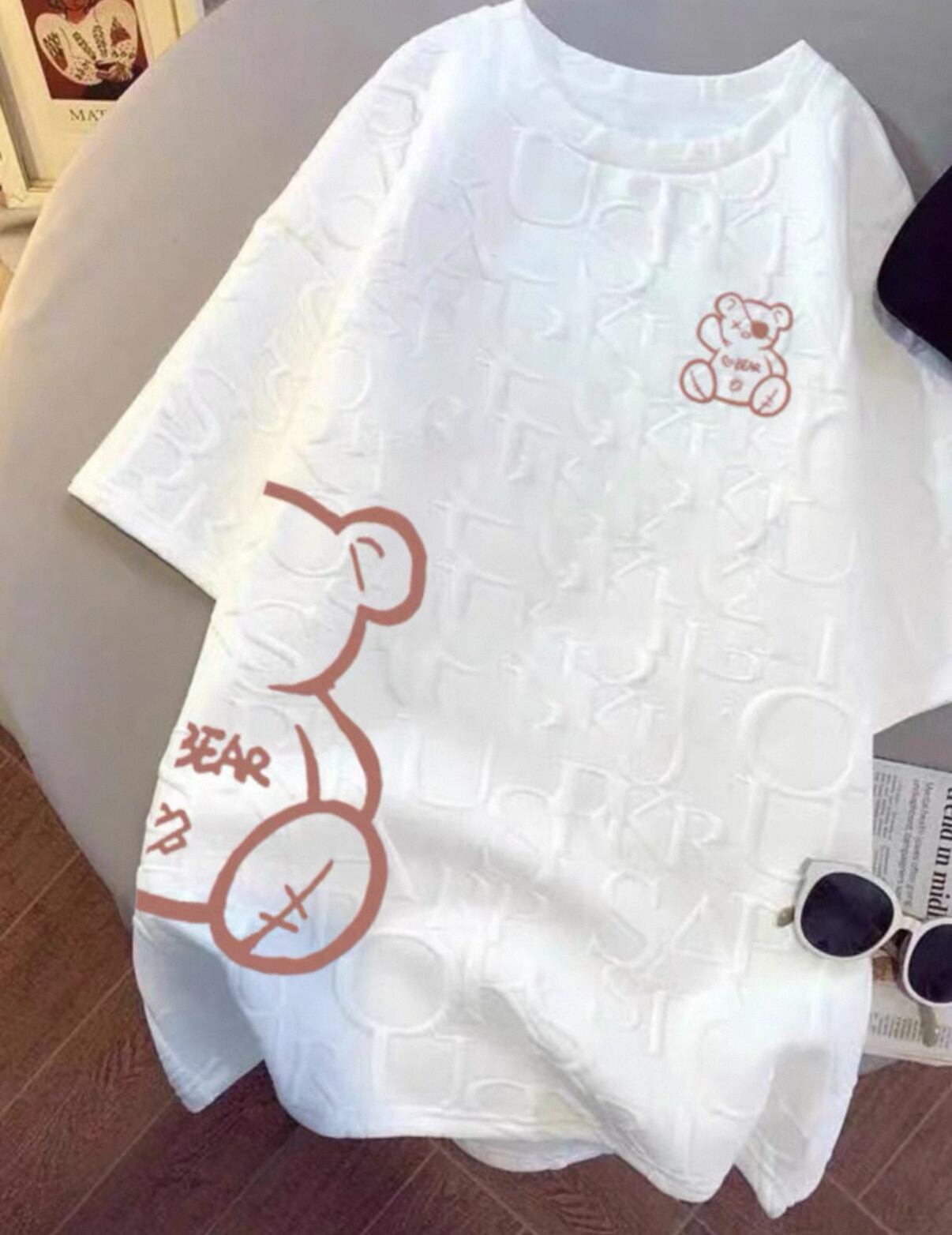 新たなシーズンにぴったりな【クマプリントTシャツ チュニック丈 大きめ カジュアル】が登場!このアイテムは、キュートなクマのプリントが特徴で、あなたのカジュアルスタイルに遊び心とリラックス感をプラスします!