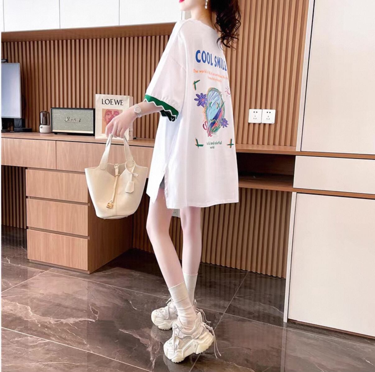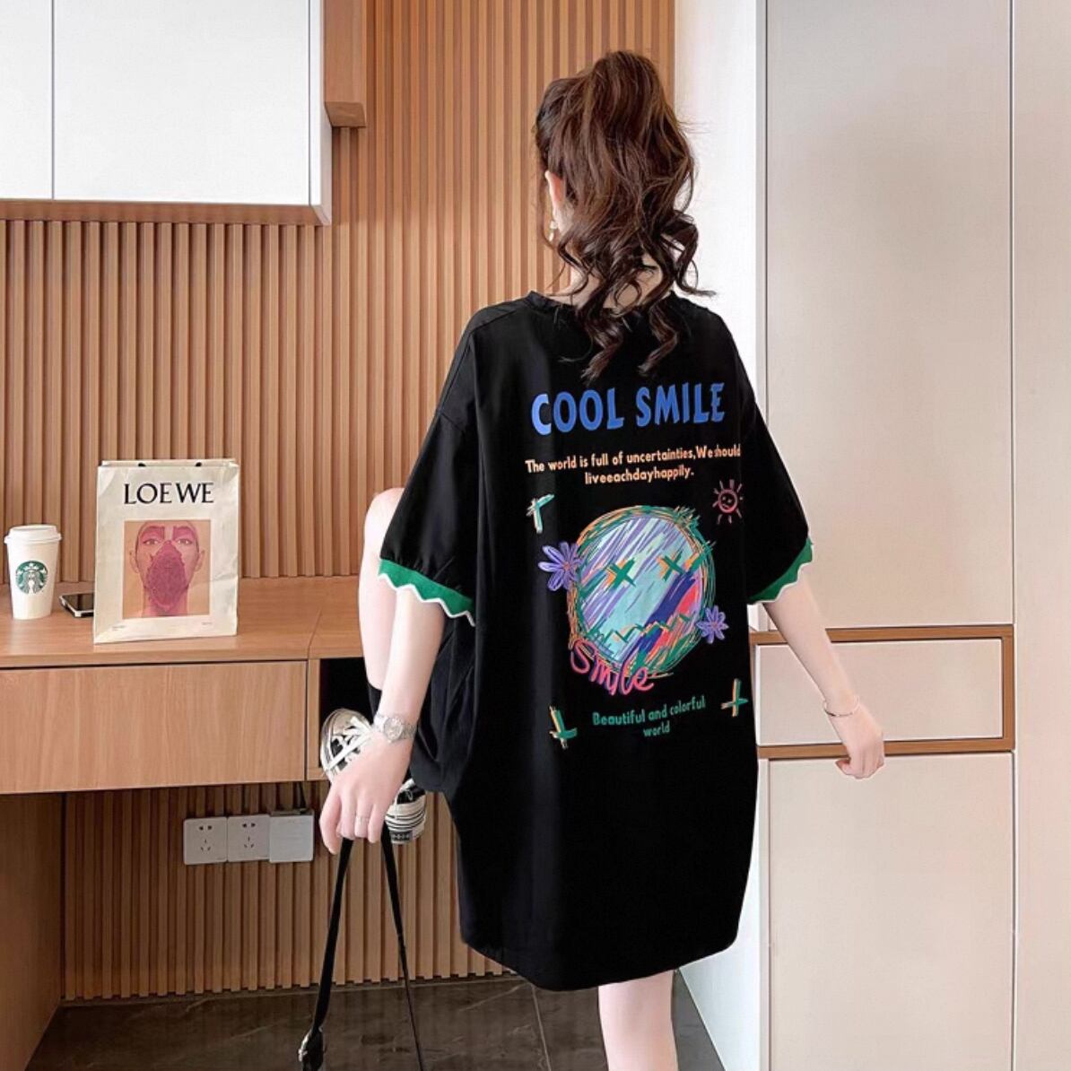 ・このTシャツは、デイリーから特別なシーンまで幅広く活躍するアイテムです!大きめのサイズ感が体型を気にせず、快適な着心地を提供します。ふんわりとした袖が可愛らしさを演出し、トレンド感も抜群です!