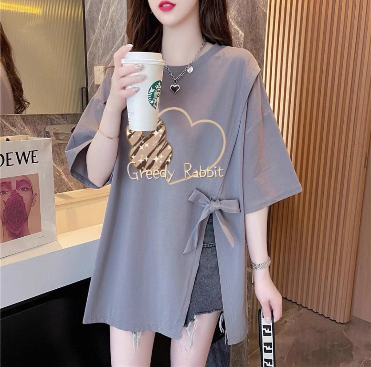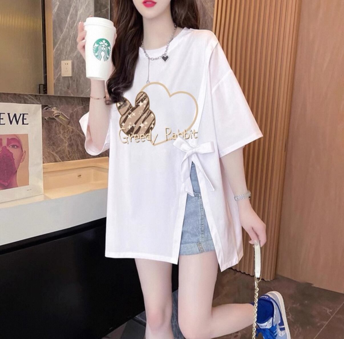 新たなシーズンにぴったりな【フロントスリット リボン Tシャツ 大きめ】が登場!このアイテムは、魅力的なフロントスリットデザインとリボンのアクセントが特徴で、あなたのスタイルに個性と快適さをプラスします!