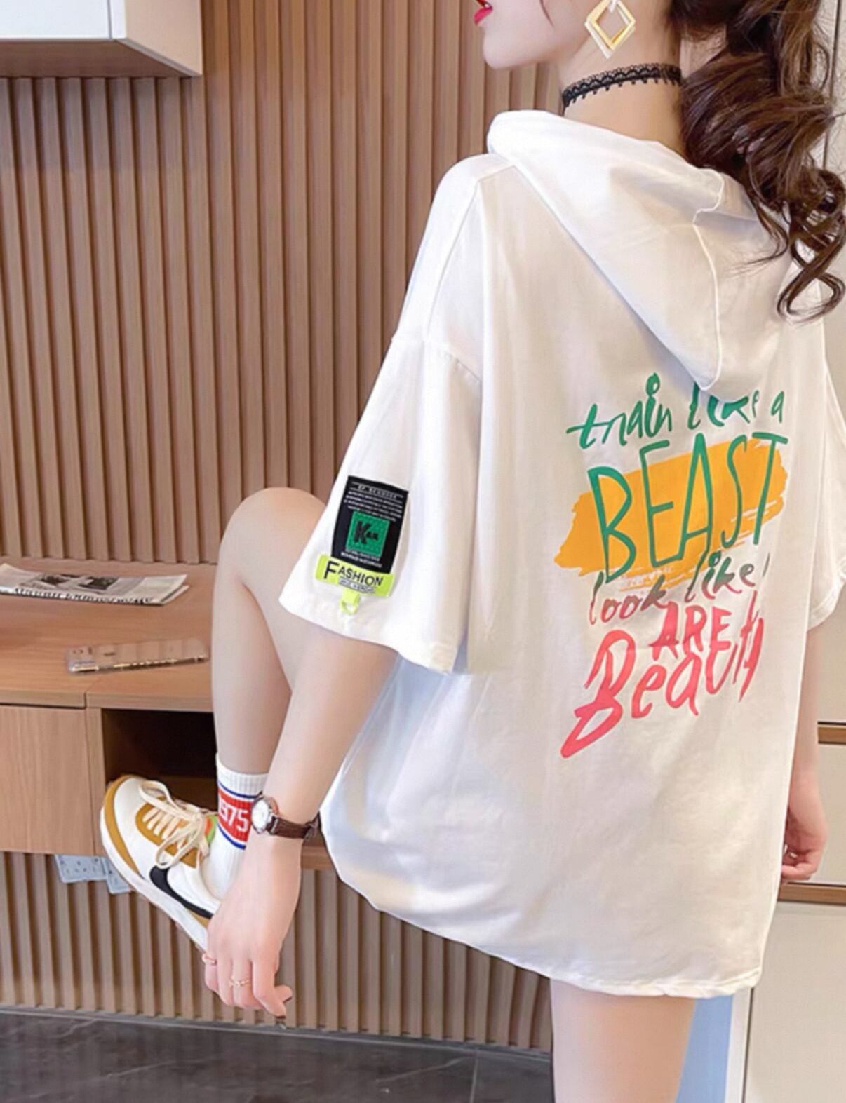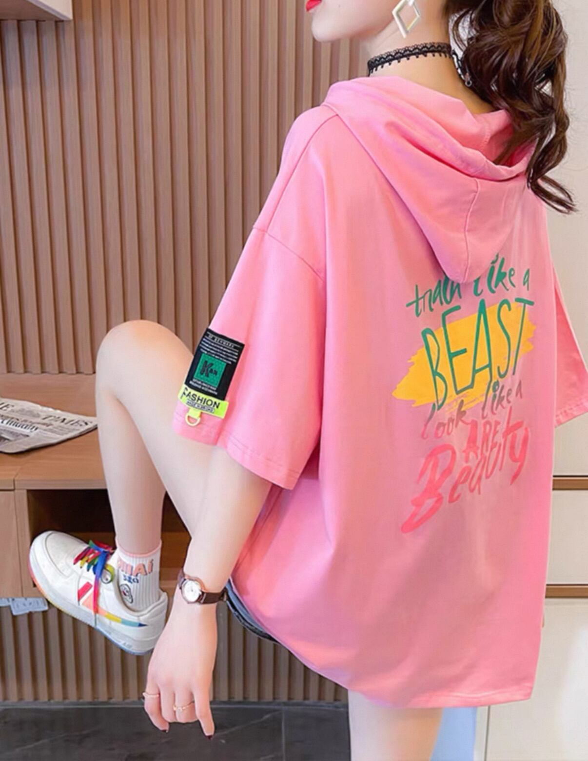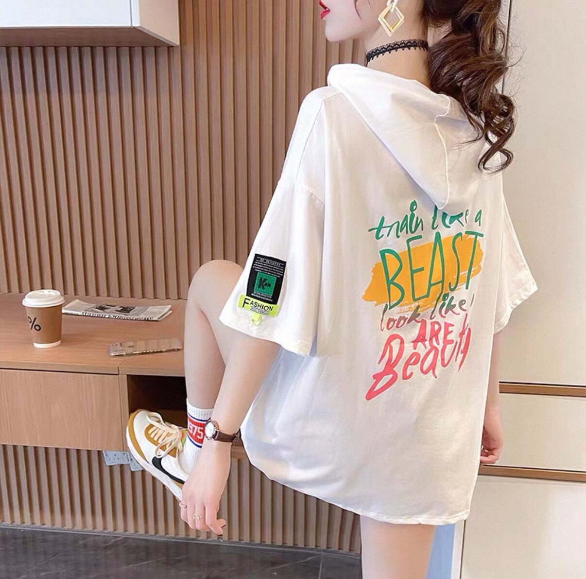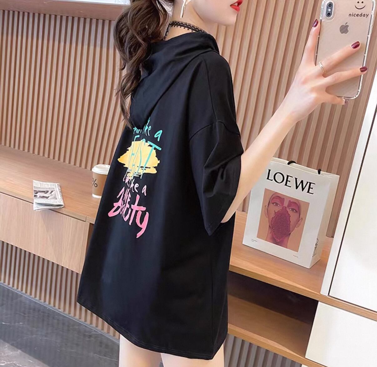 ・このフード付き デザインスウェット Tシャツは、リラックスできる大きめのシルエットが体型を気にせず着用でき、快適な着心地を実現しています。柔らかな素材を使用し、肌触りも良く、デイリー使いにぴったりです。フード付きのデザインはカジュアルスタイルにお洒落さをプラスし、デニムやスカートと組み合わせることで様々なコーディネートが楽しめます。
