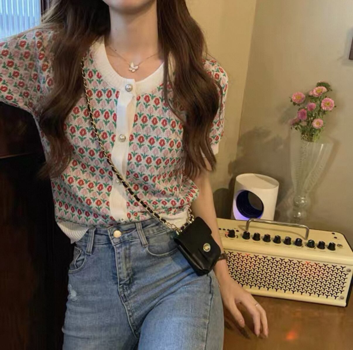 新たな季節にぴったりのアイテム【カーディガン風 お花柄 半袖 ニット Tシャツ】が登場!この商品は、カーディガン風の柔らかなデザインと可憐なお花柄が特長で、普段使いから特別なお出かけまで幅広く活躍することが期待されます!