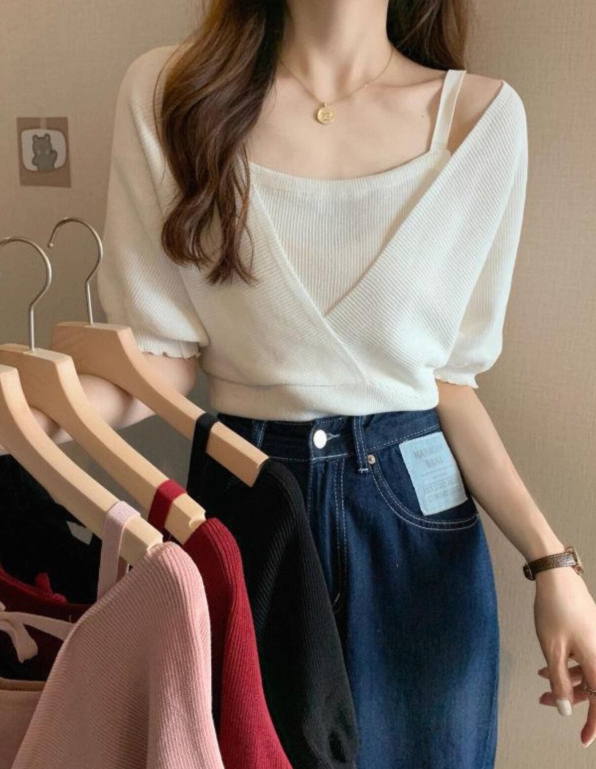 新たな季節にぴったりのアイテム【重ね着風 半袖ニット Tシャツ】が登場!この商品は、重ね着風のスタイリッシュなデザインと、快適なニット素材が特長で、普段使いから特別なお出かけまで、幅広く活躍することが期待されます!