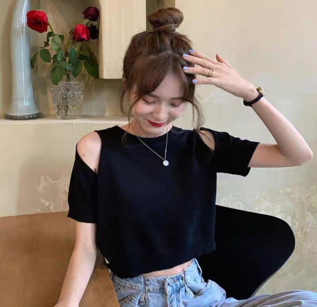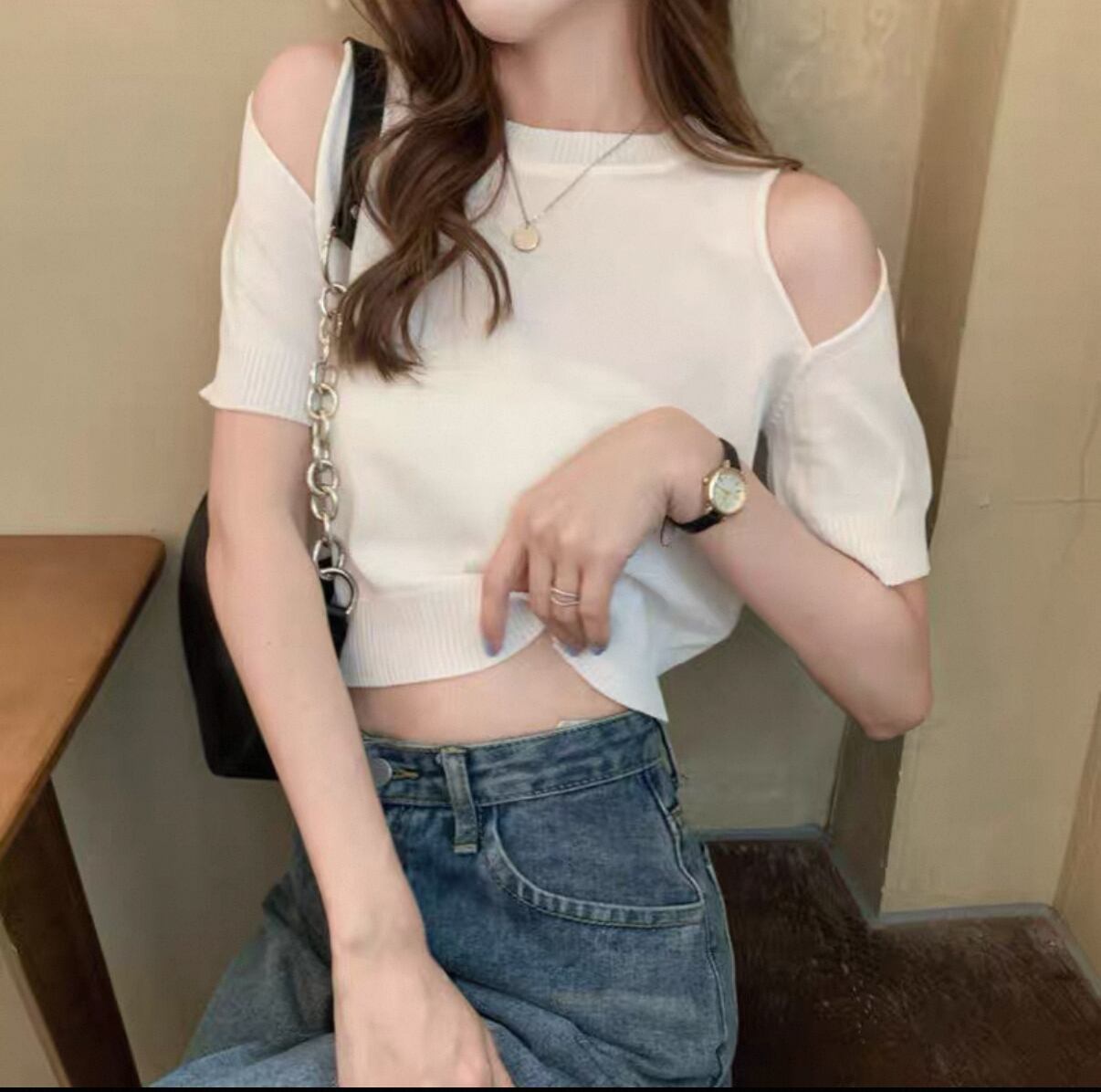 新たな季節にぴったりのアイテム【オフショルダー ハイウエスト セレブショート ニット】が登場!この商品は、トレンド感あふれるオフショルダーとハイウエストデザインが特長で、普段使いから特別なお出かけまで幅広く活躍することが期待されます!