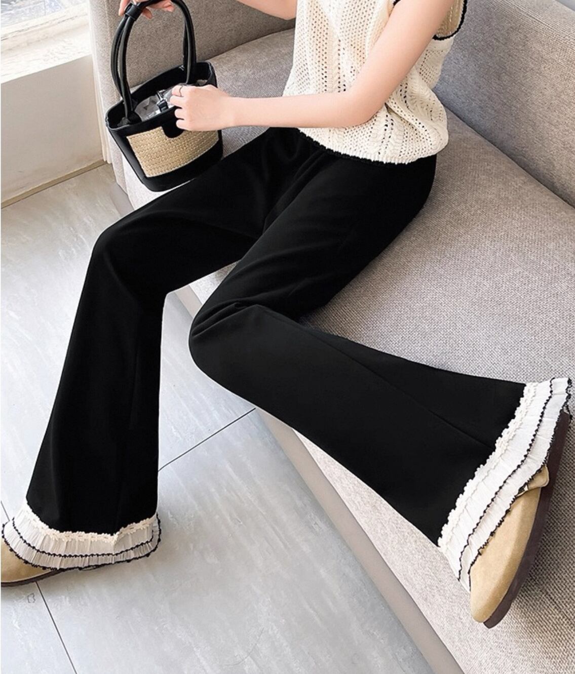 新たなシーズンにぴったりのアイテム【フレア モップパンツ レース 垂れ感 小柄】が登場!この商品は、優雅なレースデザインとトレンドのフレアシルエットが特徴で、カジュアルから特別なシーンまで幅広く活躍することが期待されます!