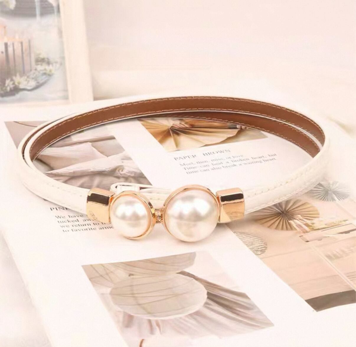 **優雅なデザインがあなたを引き立てる!パール ベルト レディース 細ベルトが登場!**