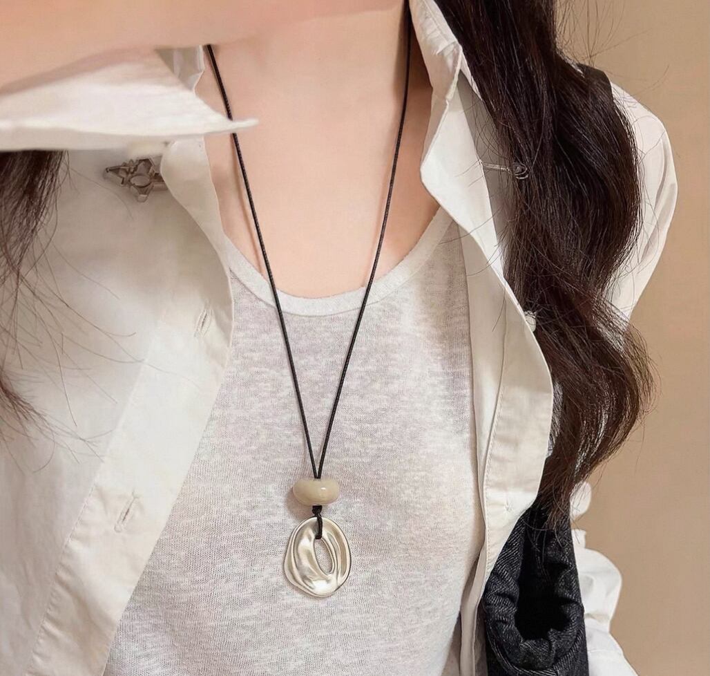 このシンプルなペンダントネックレスは、洗練されたデザインが魅力のアクセサリーです。艶やかな仕上げが高級感を演出し、カジュアルな日常使いから特別なシーンまで、様々なお洒落シーンで活躍します!一つでコーディネートを引き立てる、必見のジュエリーです。