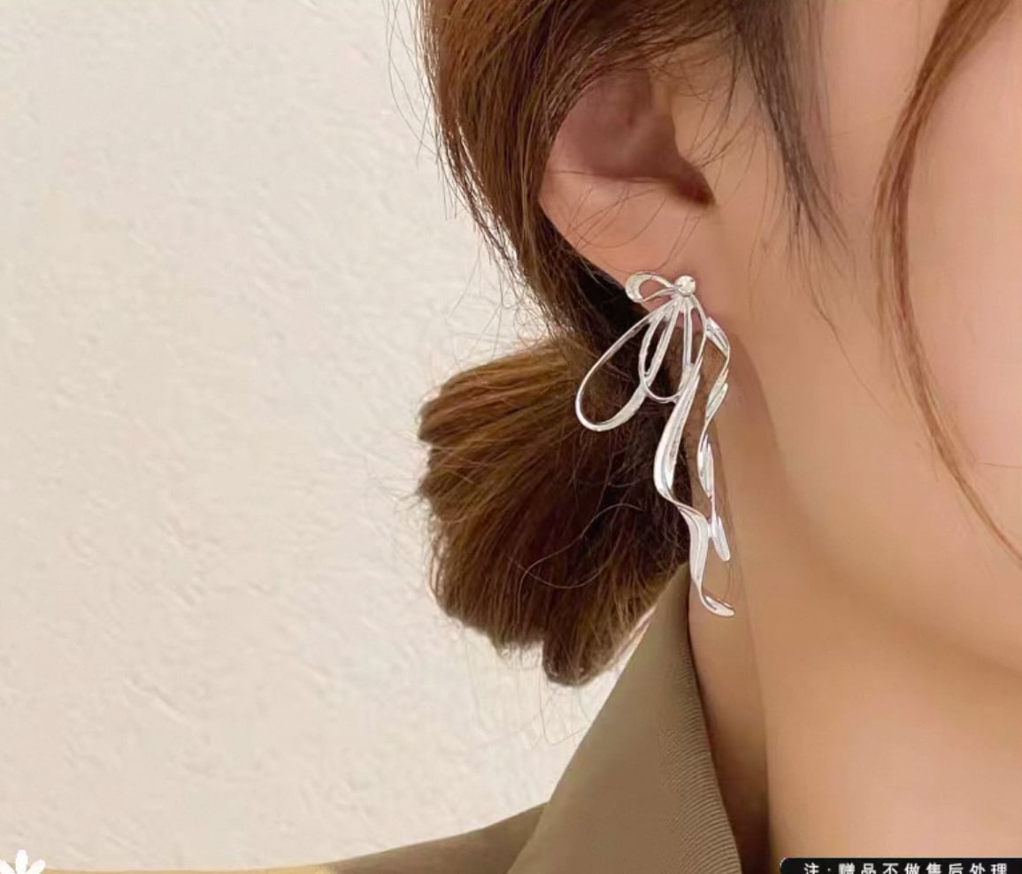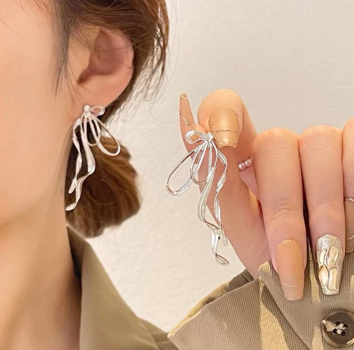 このリボン風ロングピアスは、華やかなデザインが魅力のアイテムです。軽やかな印象を与えつつ、デイリースタイルから特別なシーンまで幅広くご利用いただけます!一つでコーディネートを引き立てる、必見のアクセサリーです!