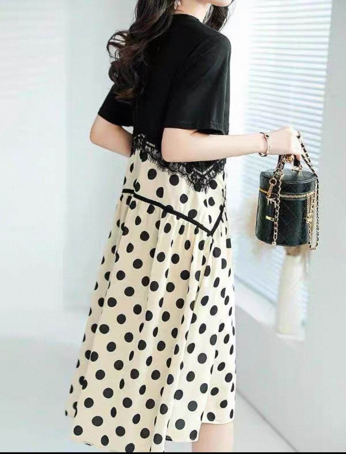 ・このワンピースは、ハイウエストデザインがウエストをすっきり見せ、女性らしいシルエットを演出する魅力的なデザインです!水玉模様が愛らしさを引き立て、柔らかな生地感により、心地よい着用感を提供します。普段使いやおしゃれなイベントにぴったりの非常に魅力的なアイテムです。