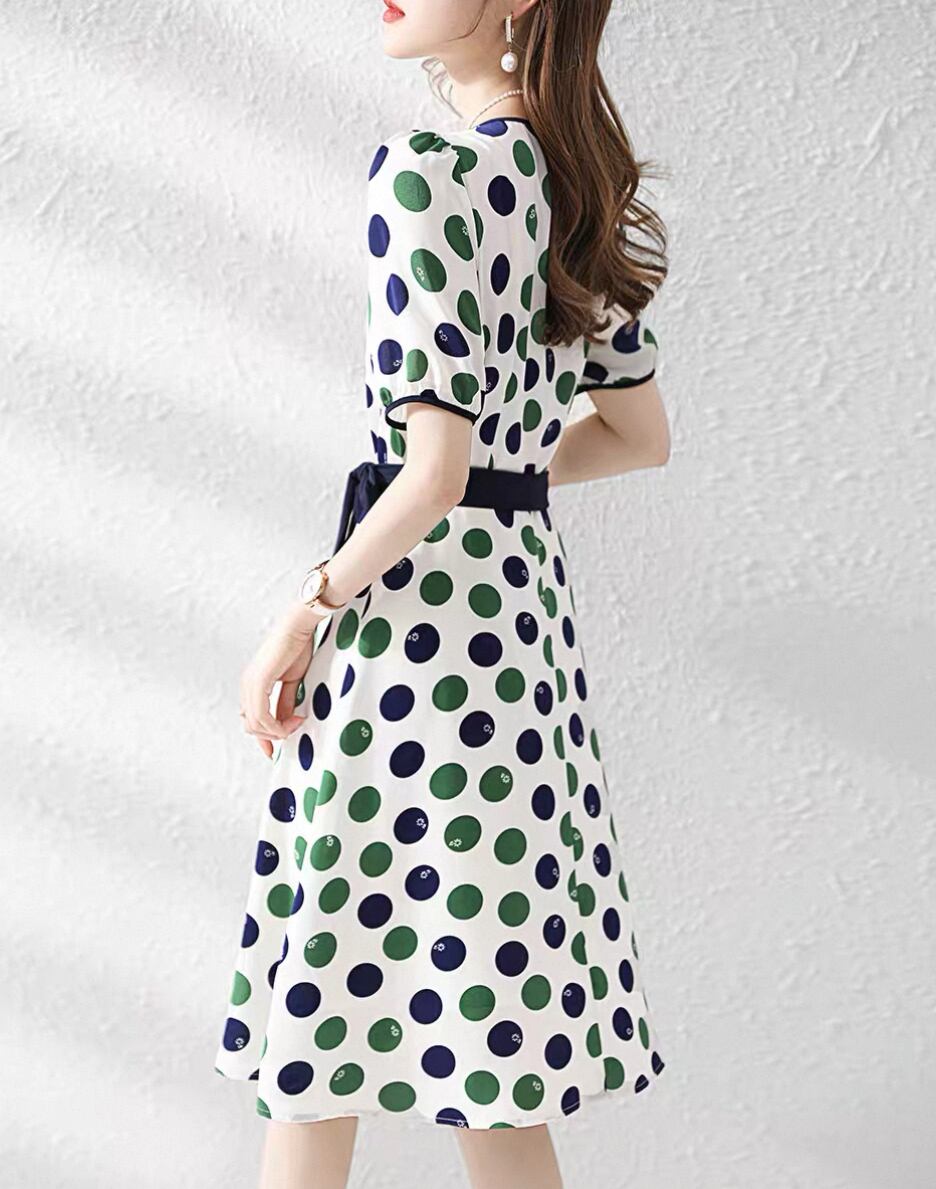 **個性的でおしゃれな一着!フレンチスクエアネック ドットワンピース カジュアルが新登場!**