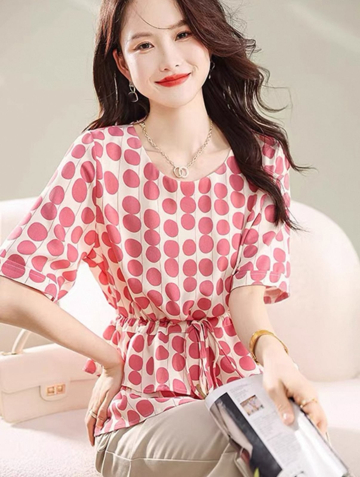 **華やかさを演出!プリーツ半袖Tシャツ エレガント 水玉模様が新登場!**