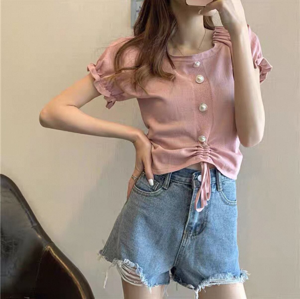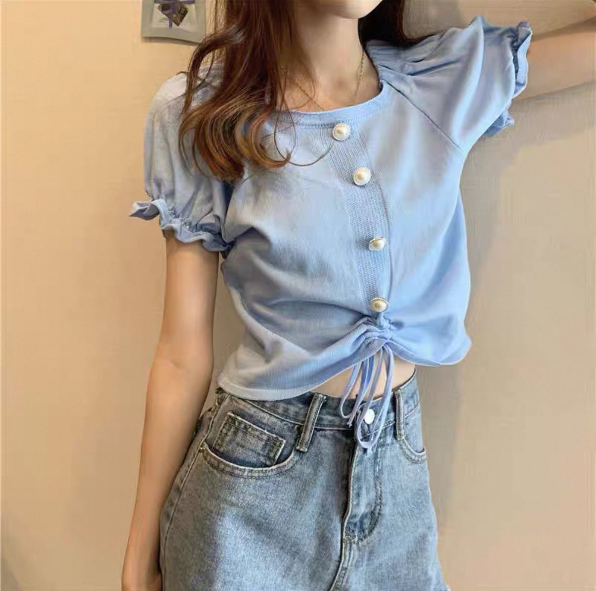 **可愛らしさとトレンド感!パフスリーブ ハイウエスト ショートトップスが新登場!**