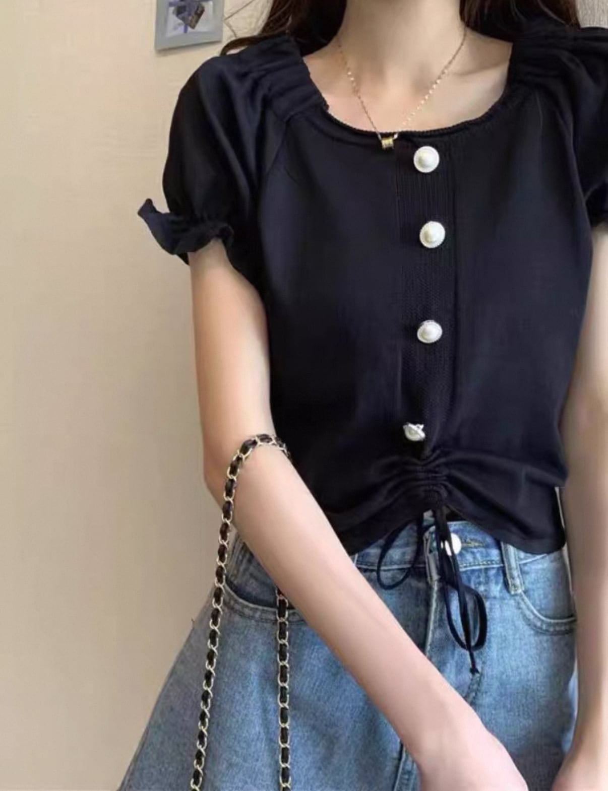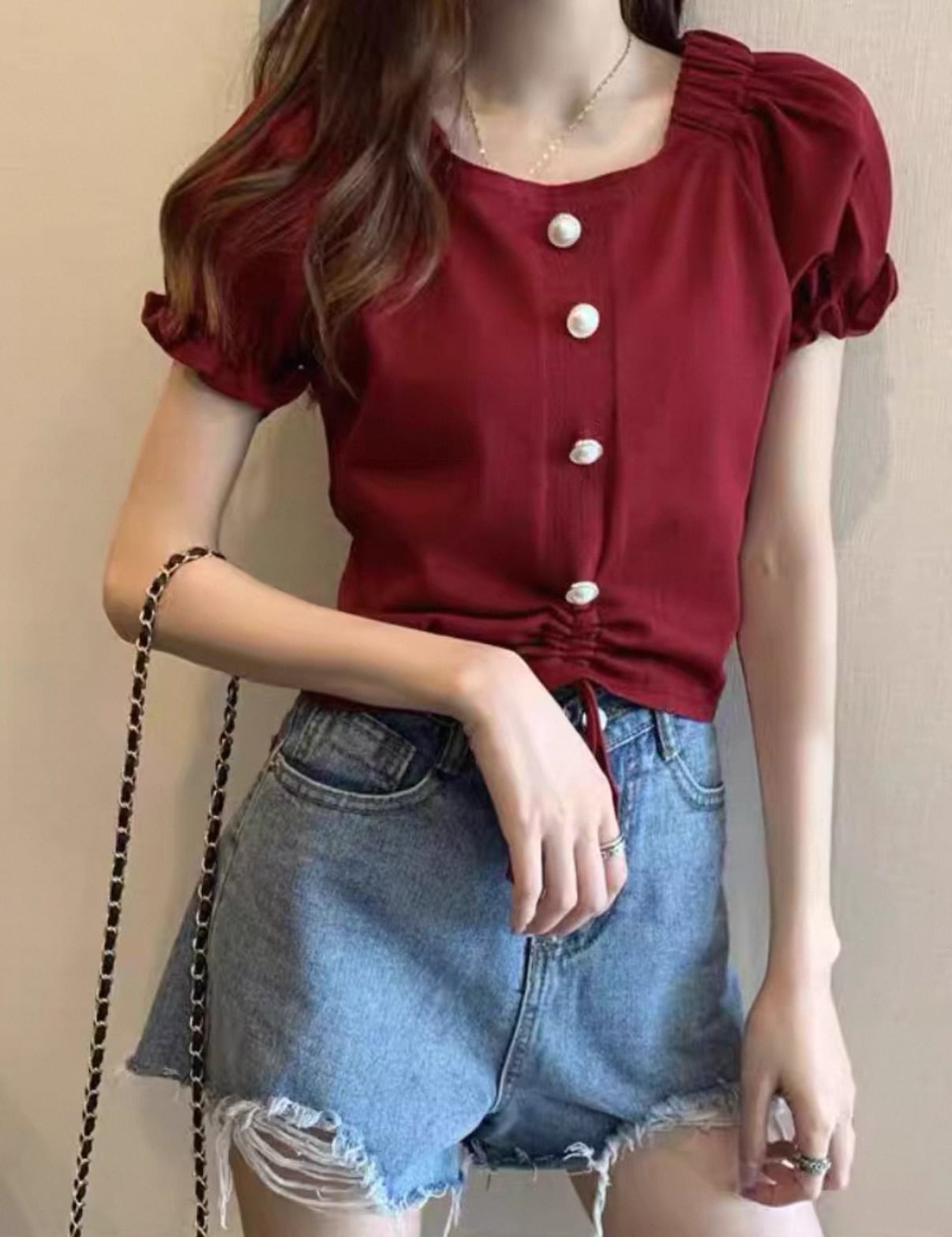 ・このトップスは、魅力的なパフスリーブとハイウエストラインが特徴で、着用することで引き締まったウエストラインを強調します。軽やかな素材感は、暑い日にも快適さを提供してくれます。さまざまなボトムスと合わせやすく、スカートやデニムなど、幅広いスタイリングが楽しめることでしょう!