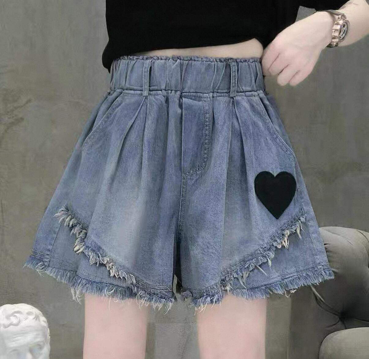 **個性的でかわいい!ダメージフリル ハート付き デニムショートパンツが新登場!**