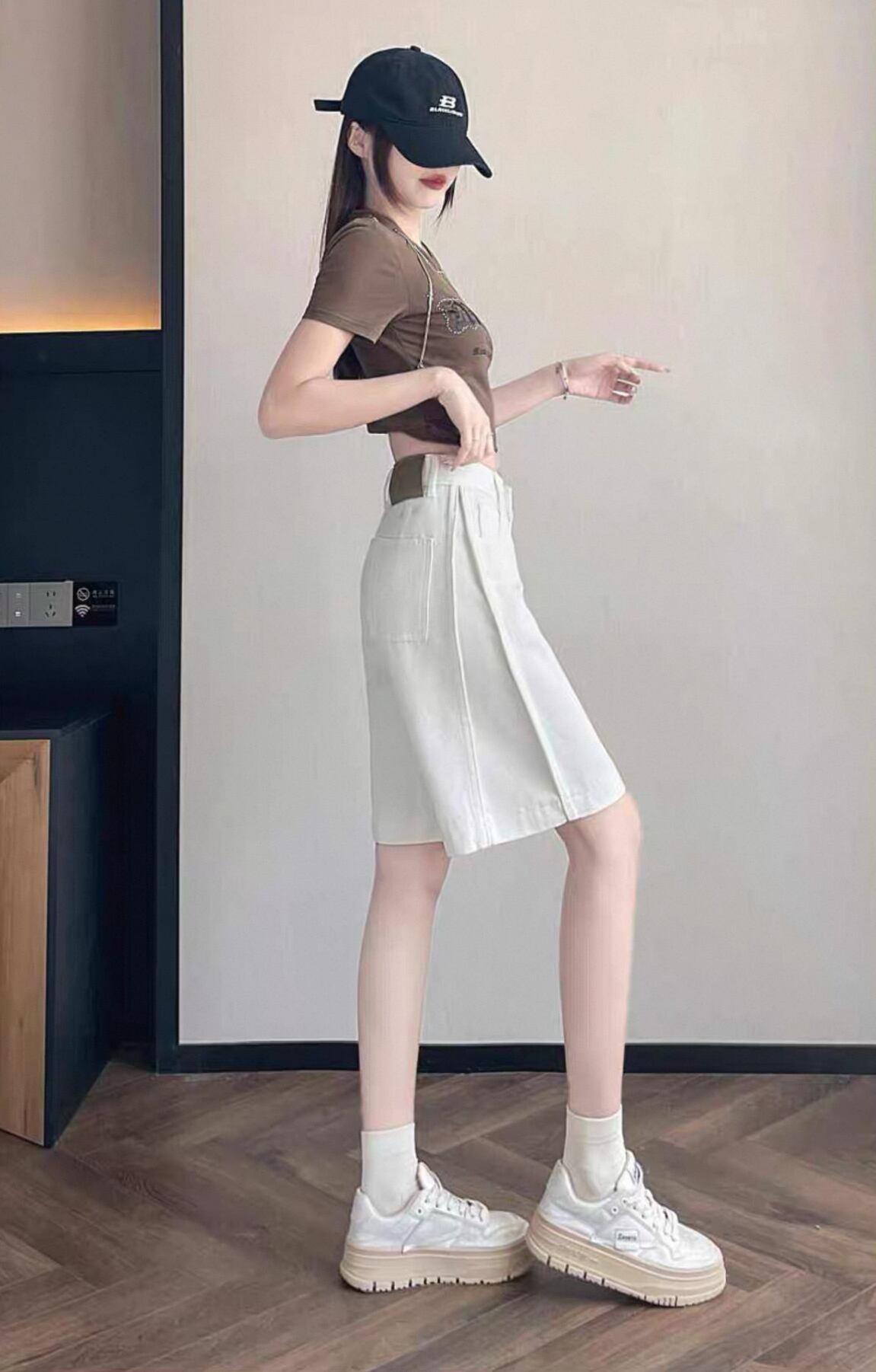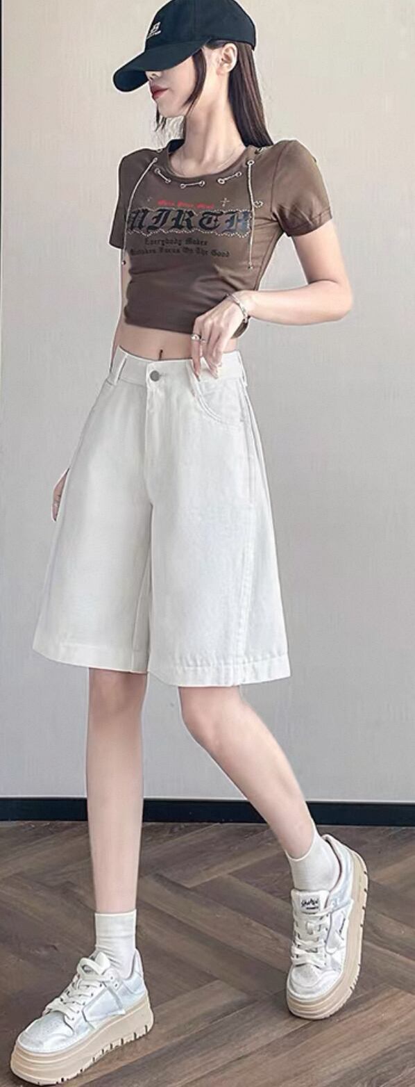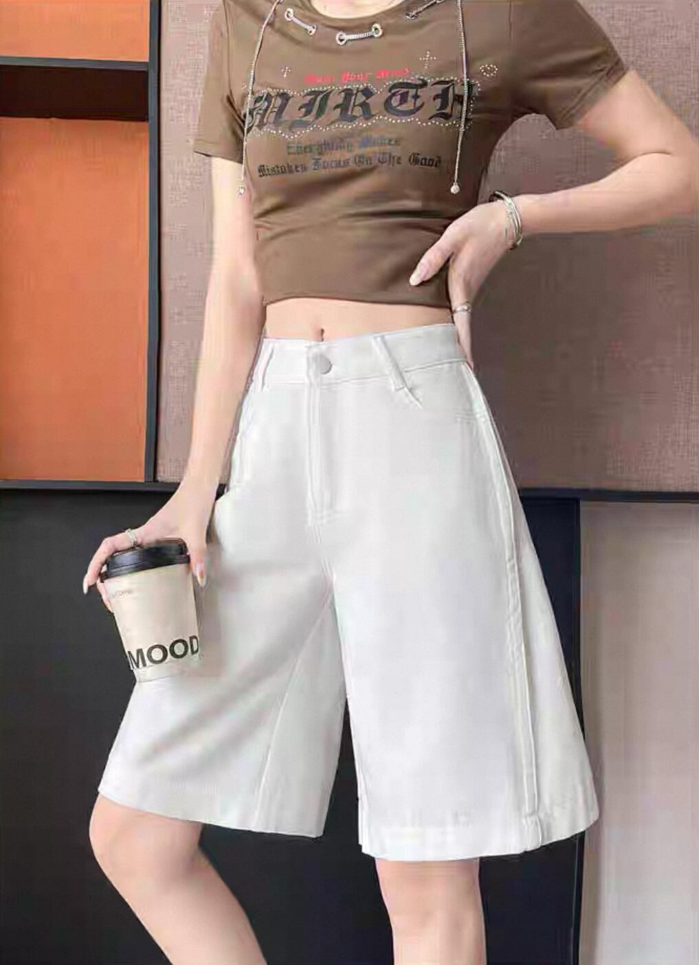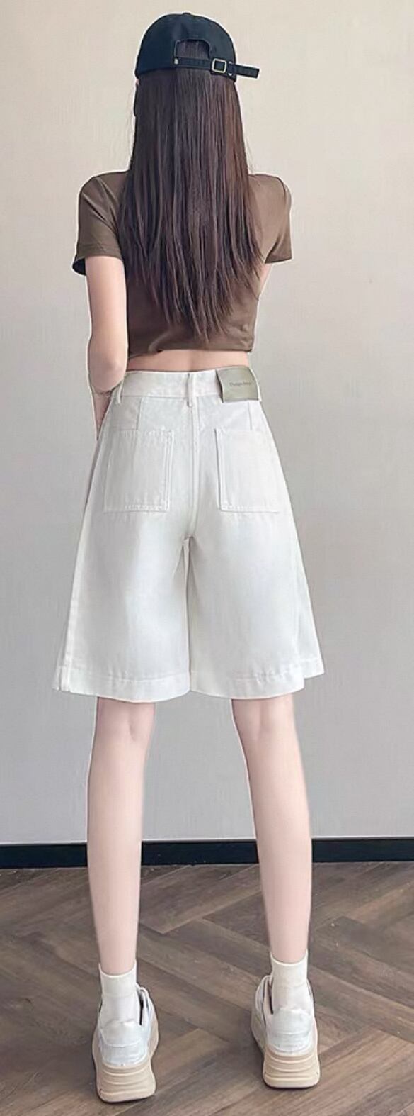 **シンプルでスタイリッシュな必需品!ホワイト 五分丈 ハイウエスト ハーフパンツが新登場!**