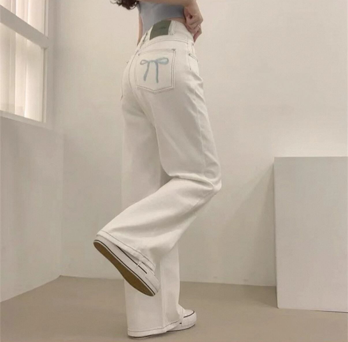 **個性的なスタイルを楽しむ!刺繍リボン ストレートワイドジーンズが新登場!**