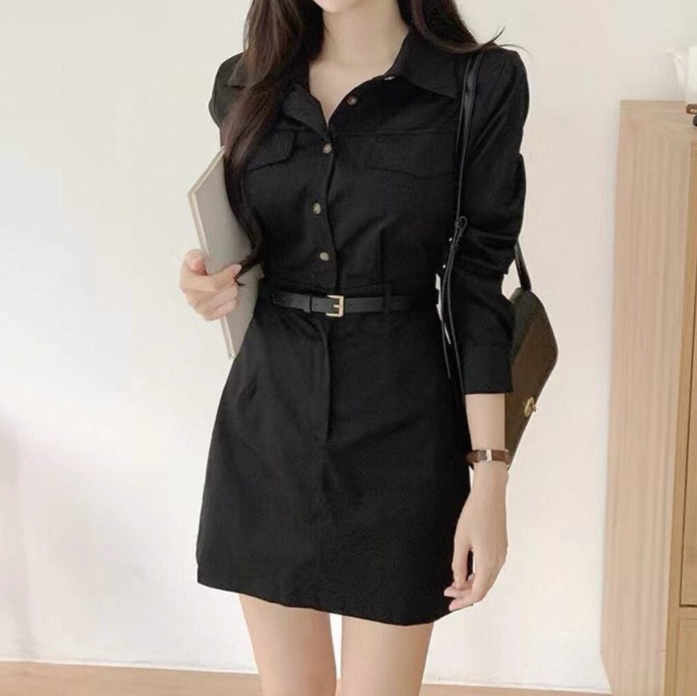 **洗練された印象を与える!シンプルシャツワンピース ベルト付き 通勤が新登場!**