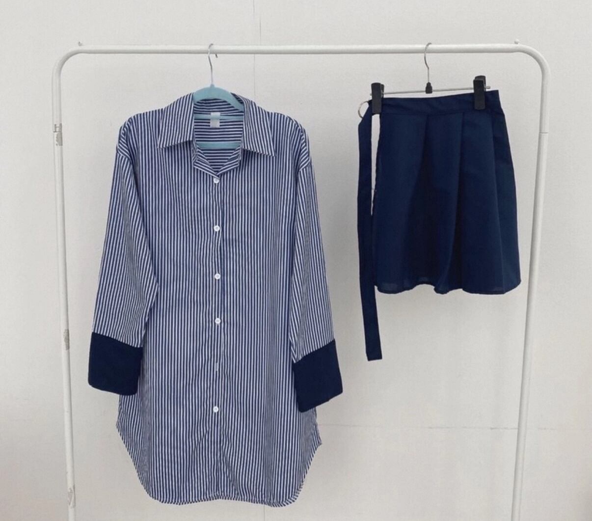 【トレンド】ストライプ柄 シャツワンピース スカート重ね着