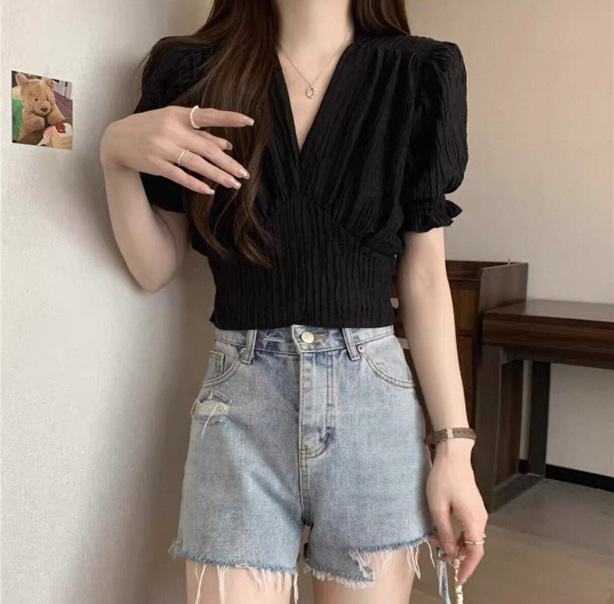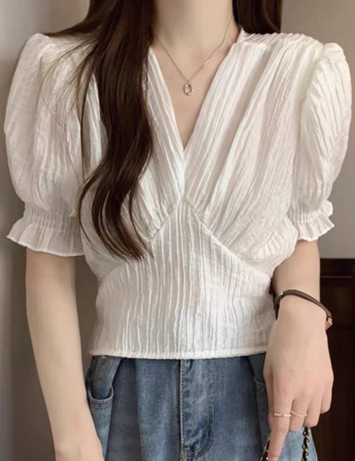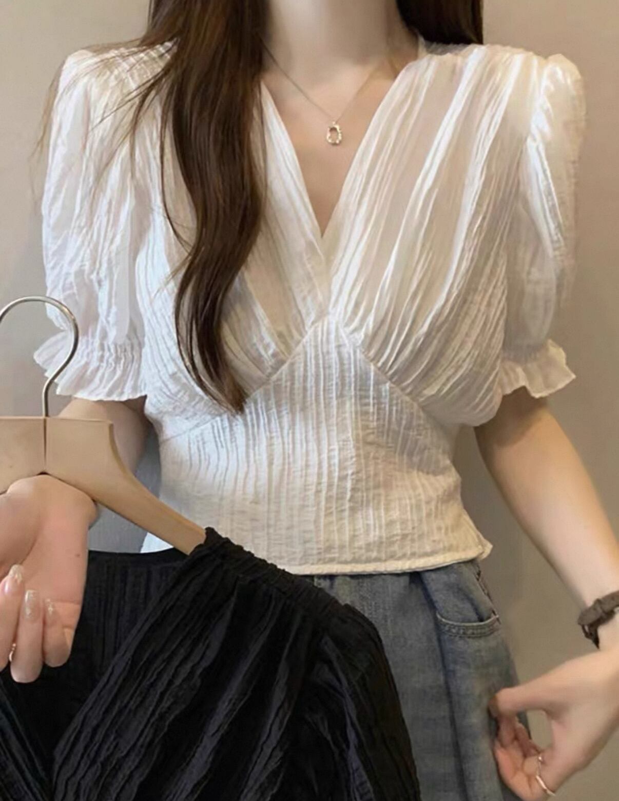 **フェミニンな印象を引き立てる!Vネック半袖Tシャツ パフスリーブが新登場!**