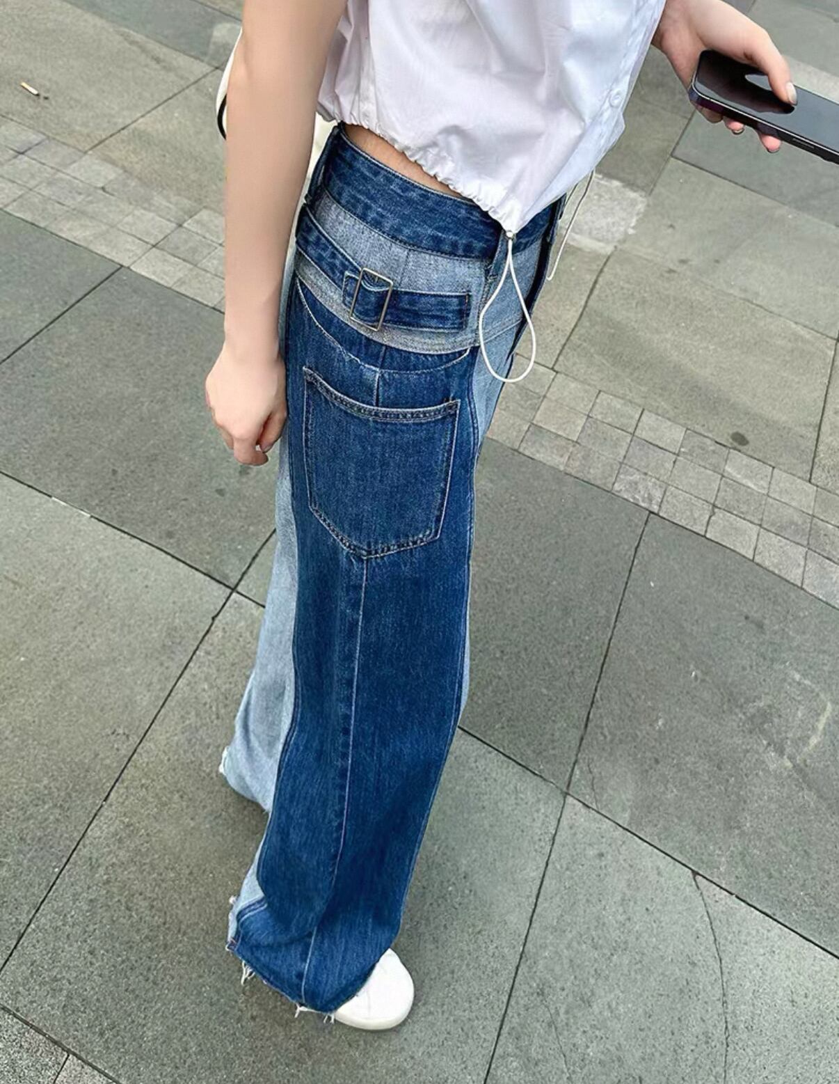 ・このデニムは、ストレートワイドシルエットが体型を美しく見せ、2色使いのデザインが個性を引き立てます。ゆったりとした履き心地で、特にカジュアルなTシャツやブラウスとのコーディネートが楽しめます。デイリーユースからちょっとしたお出かけまで、様々なシーンでの活躍が期待できるアイテムです。ぜひこのデニムを取り入れて、あなたのスタイルに新たな風を吹き込んでみてください!