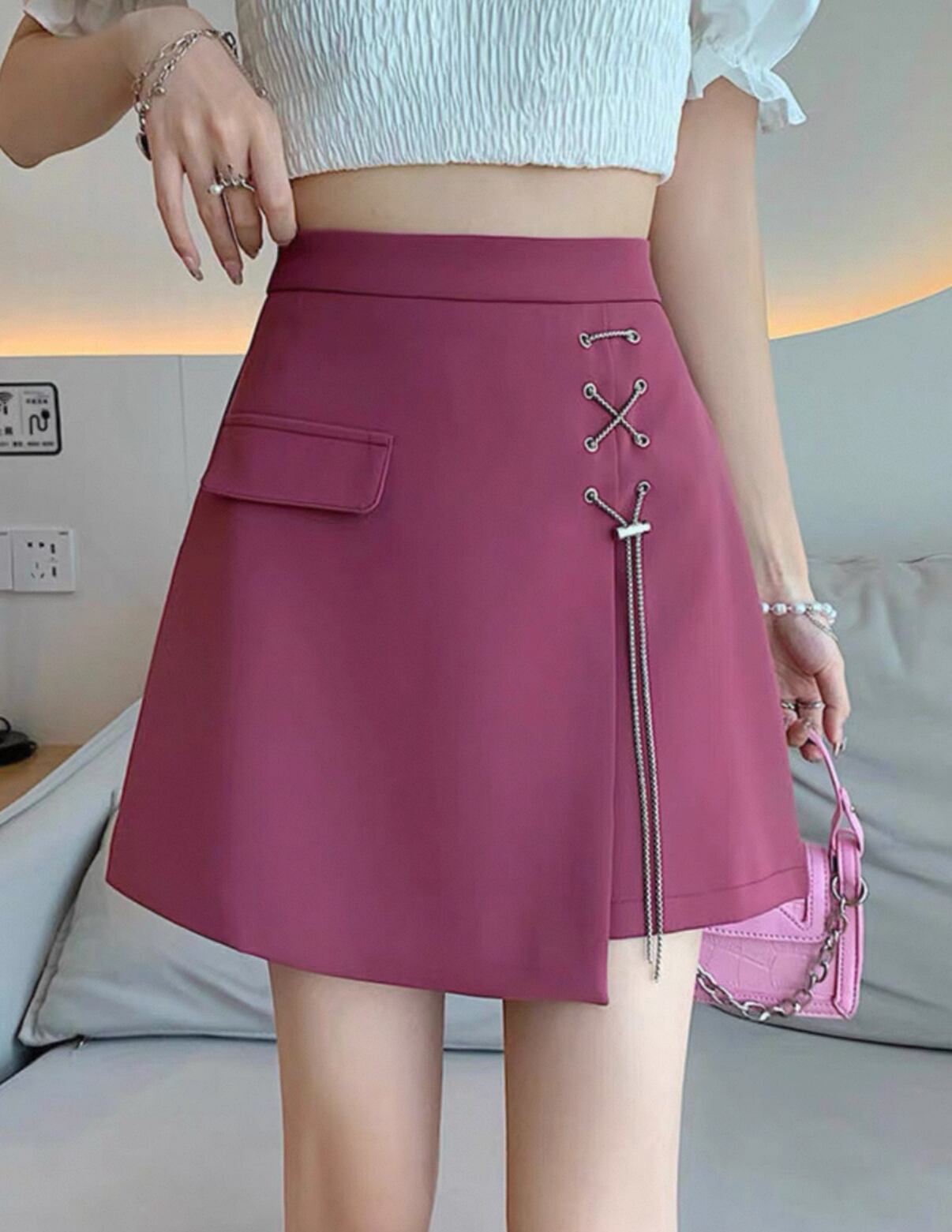 このアシンメトリー ラップスカート ショートスカートは、洗練されたデザインと心地よい着心地を兼ね備え、カジュアルなお出かけからおしゃれなデートまで幅広く活躍するアイテムです!