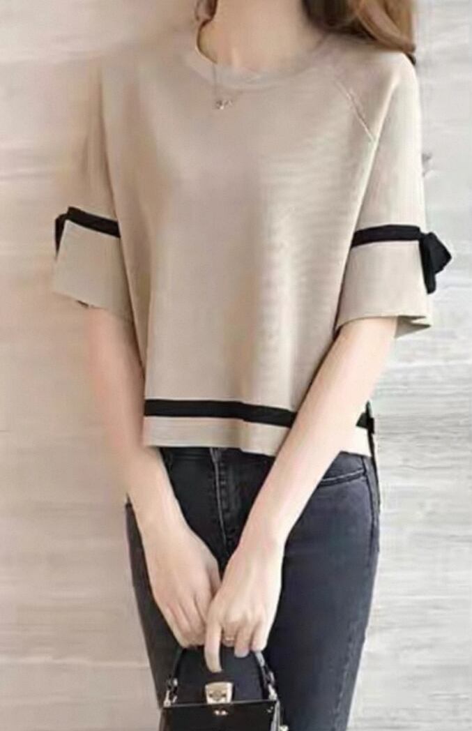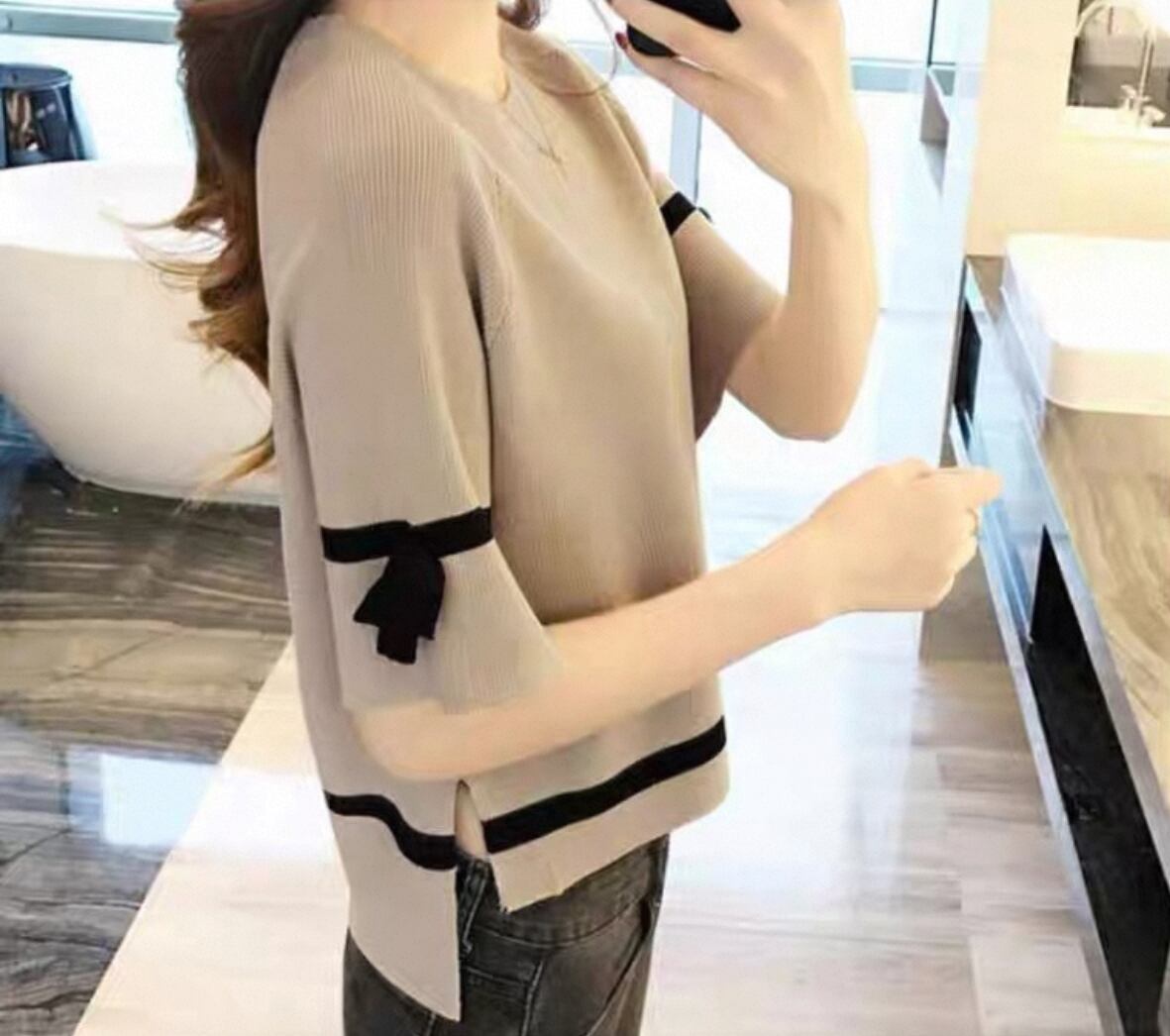 薄地ニットTシャツ 五分袖 通勤 自宅 買い物