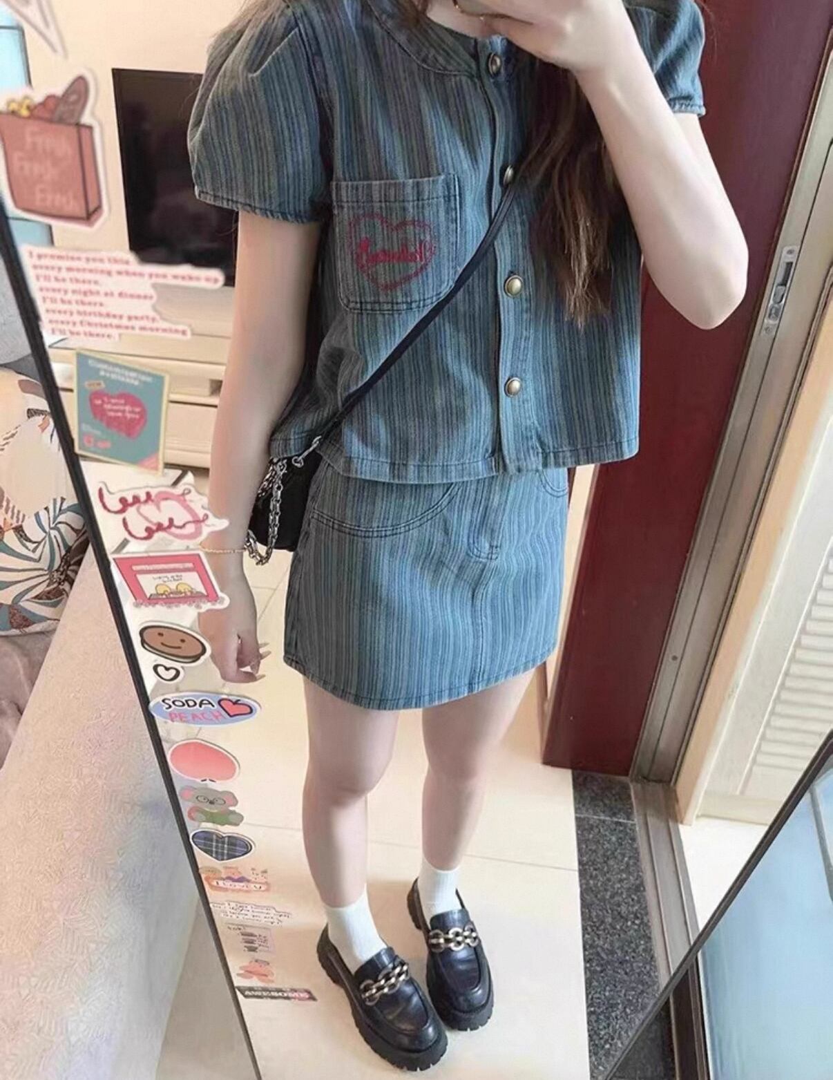 **スタイルを一新!【2点セット】ストライプデニムセット スカートが新登場!**