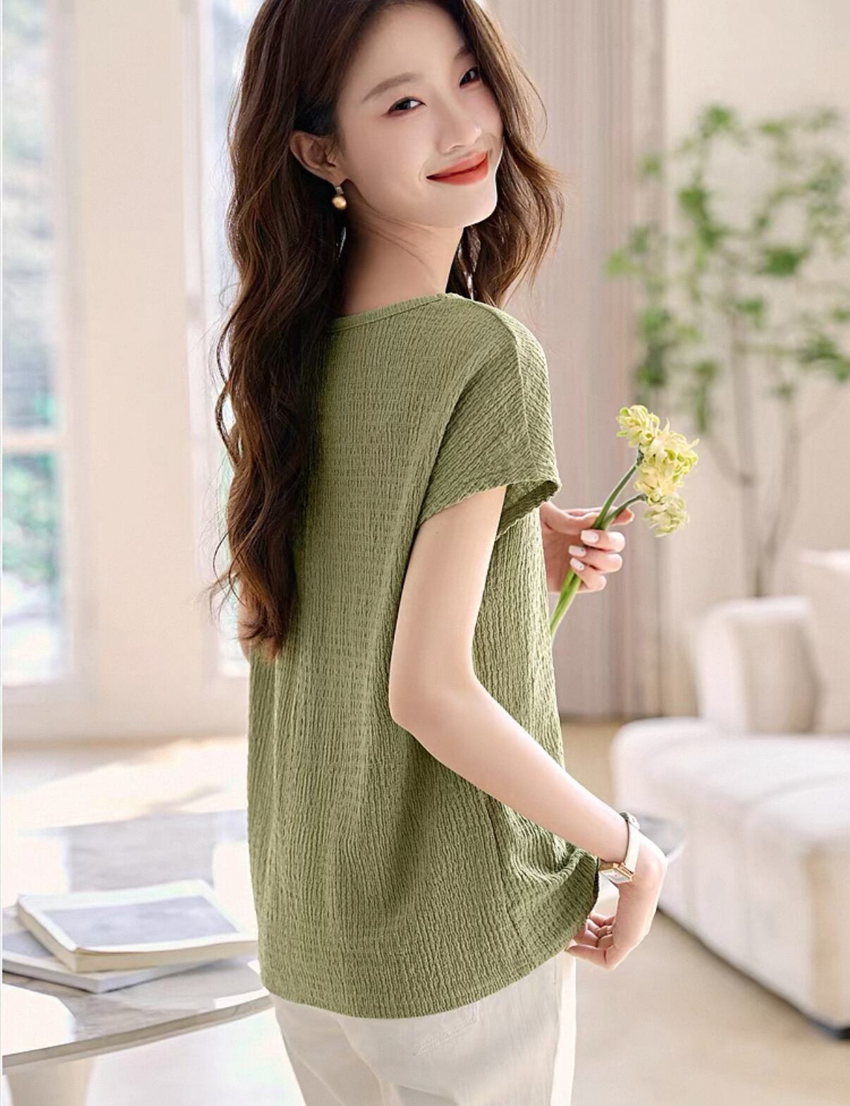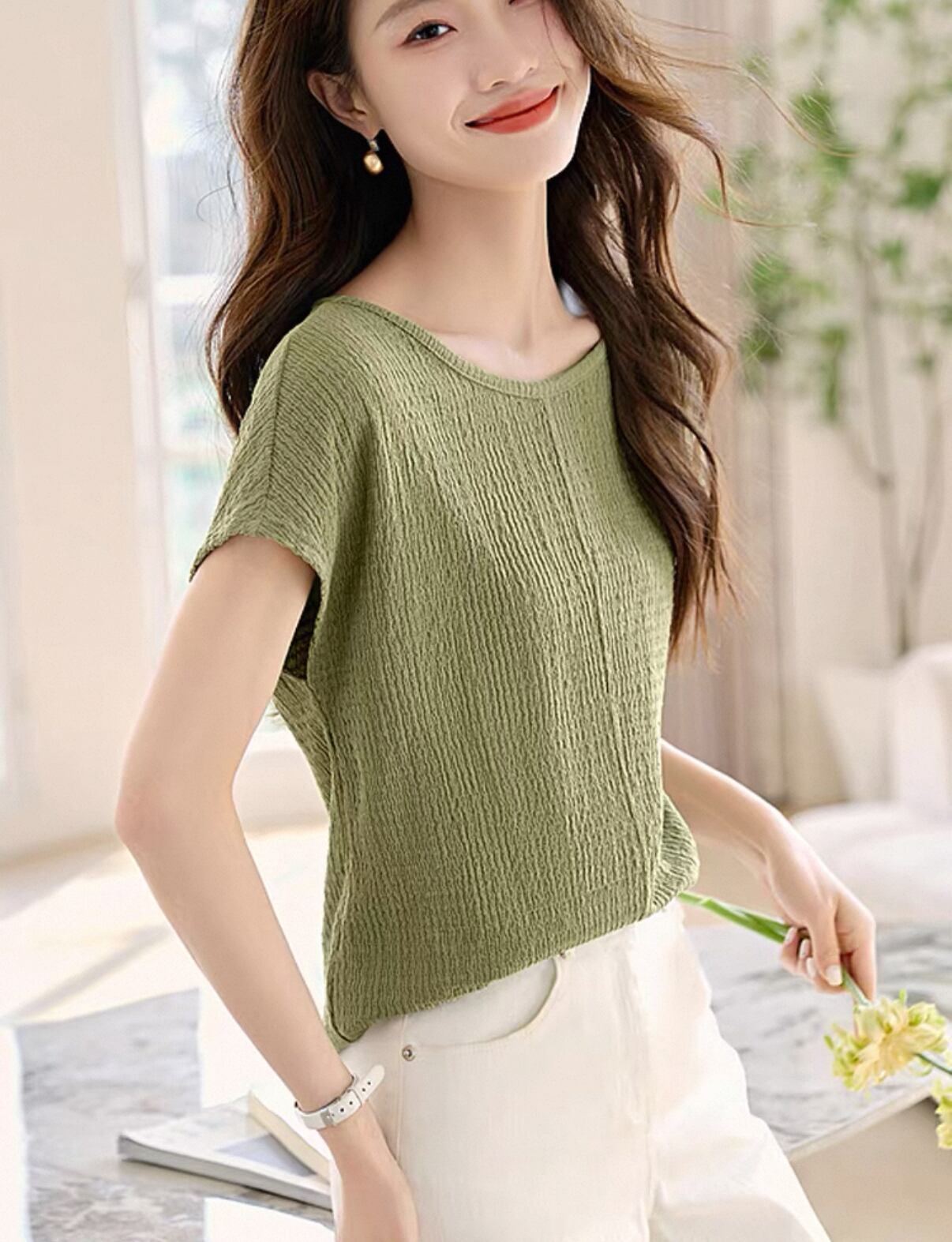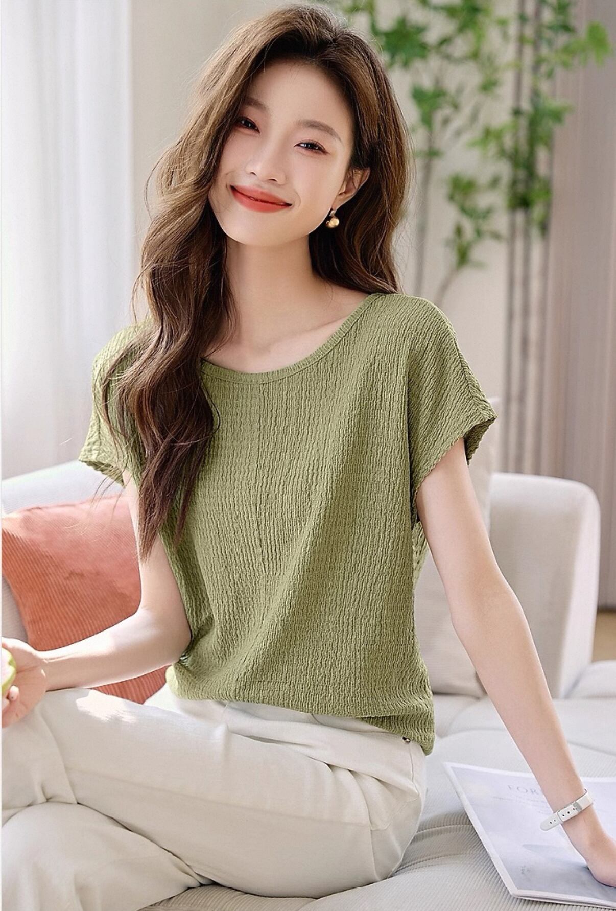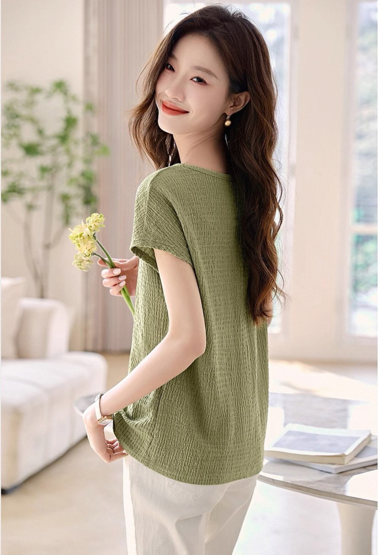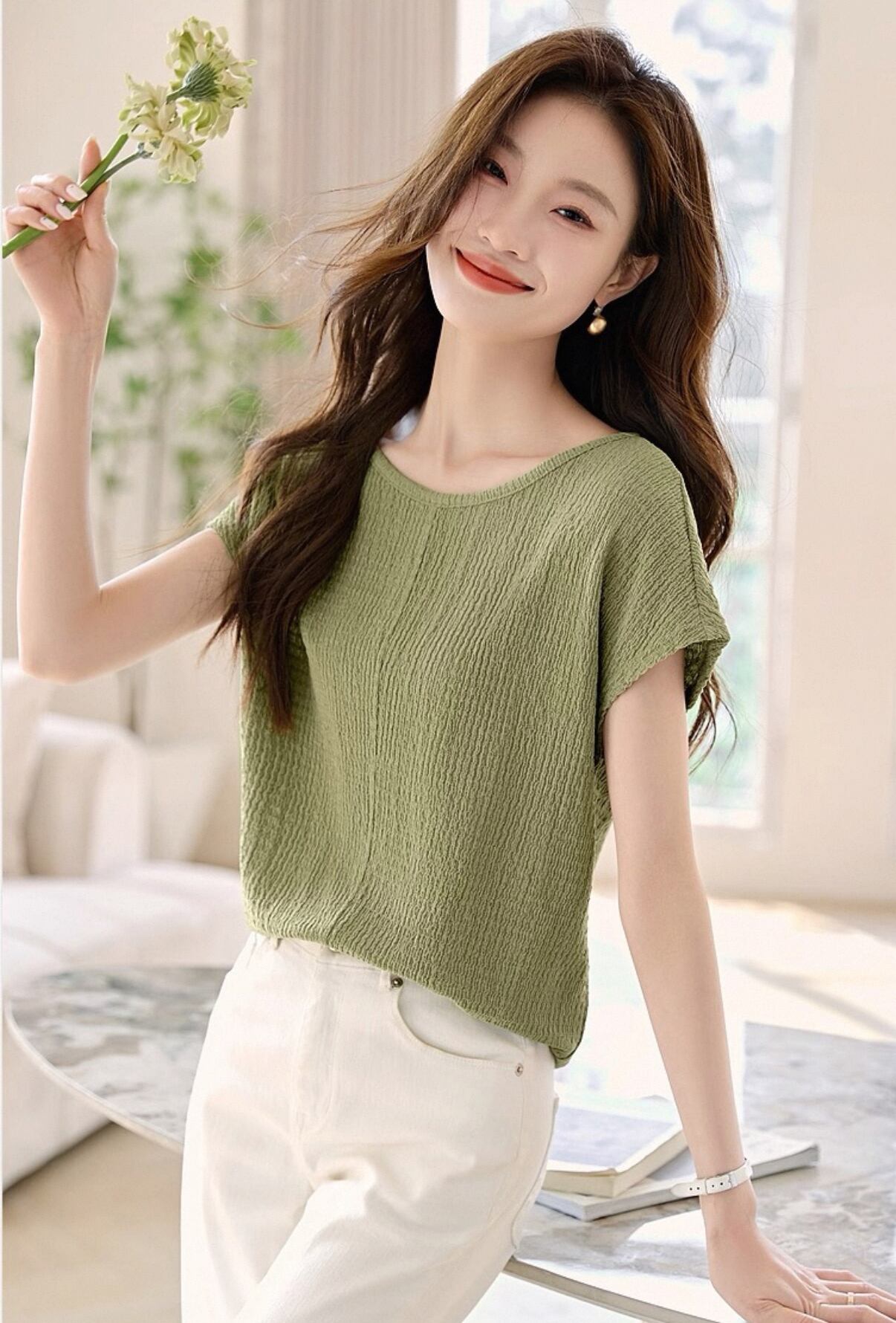 ラウンドネック 半袖Tシャツ 万能 ミントグリーン