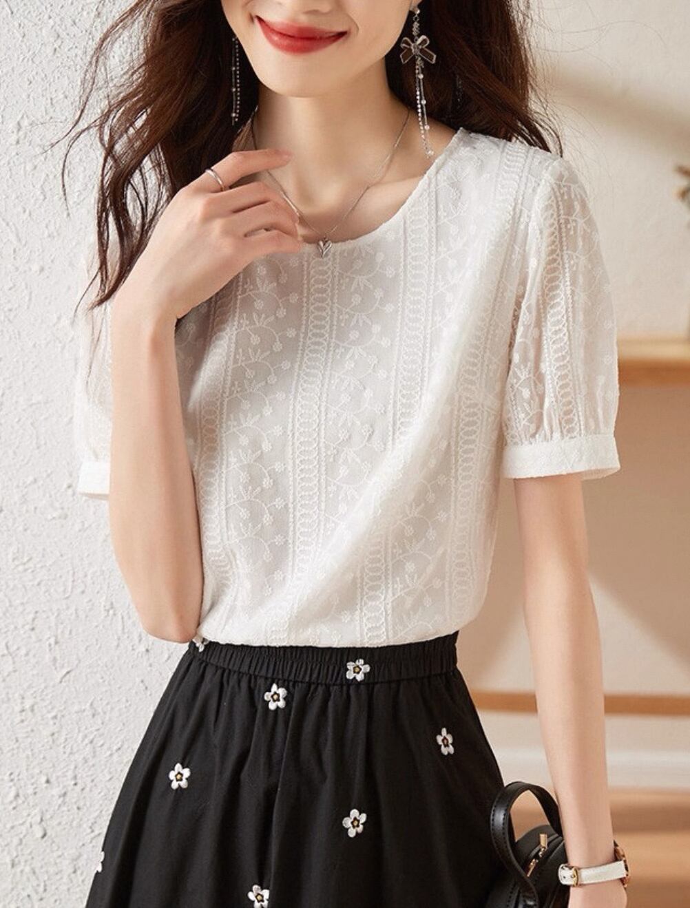 **エレガントで快適!ジャカードレースシャツ 通勤 オフィス カジュアルが新登場!**