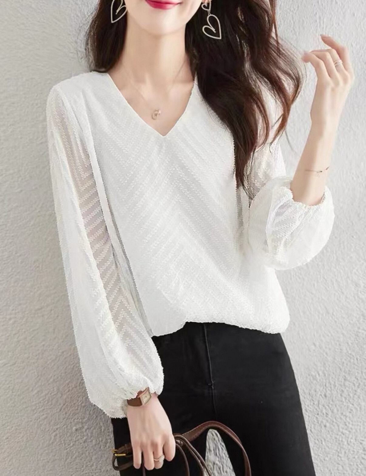 **エレガンスを放つ、メッシュレースシフォン ランタンスリーブ ゆったりが新登場!**