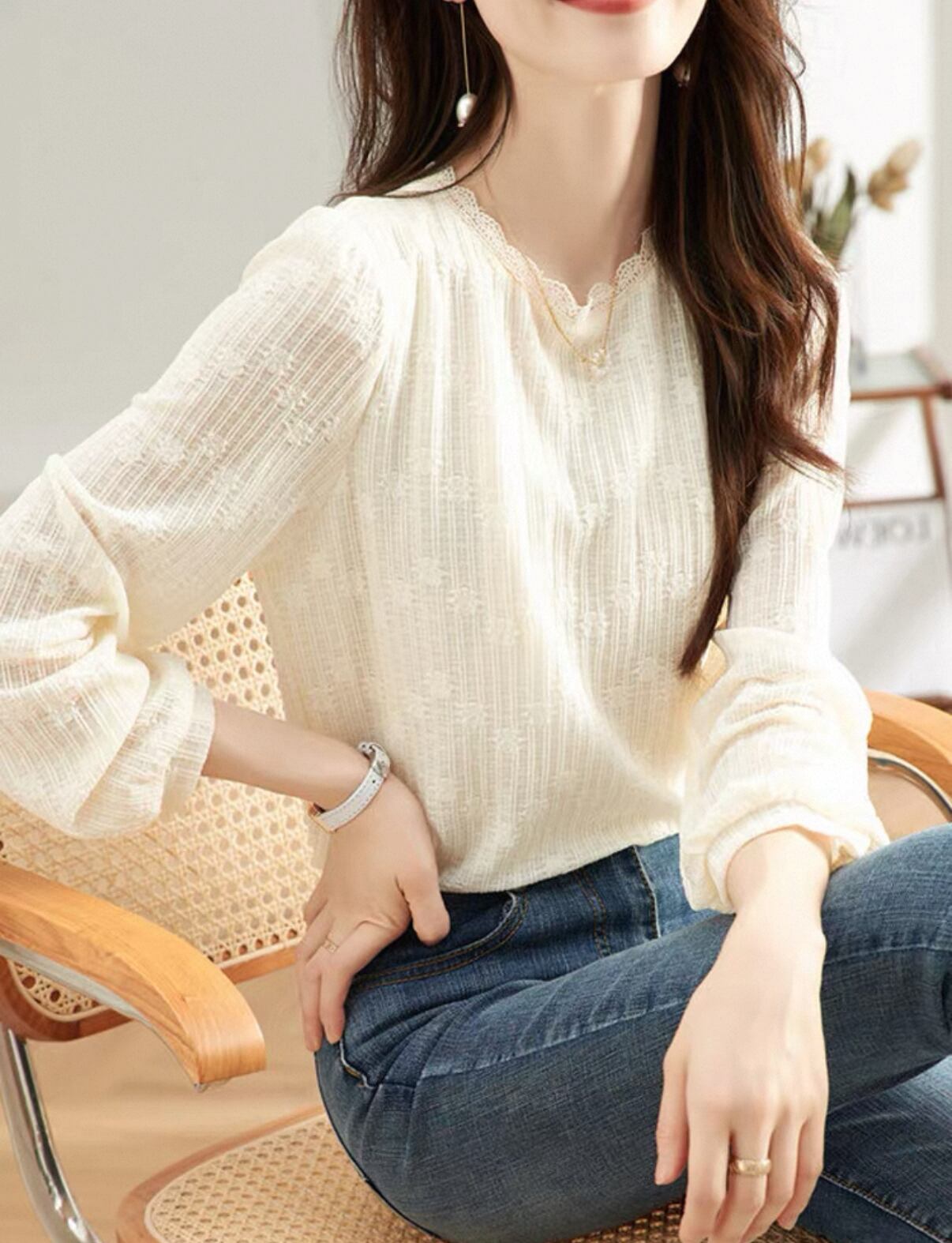 ランタンスリーブ レースステッチネック 万能 インナーにも