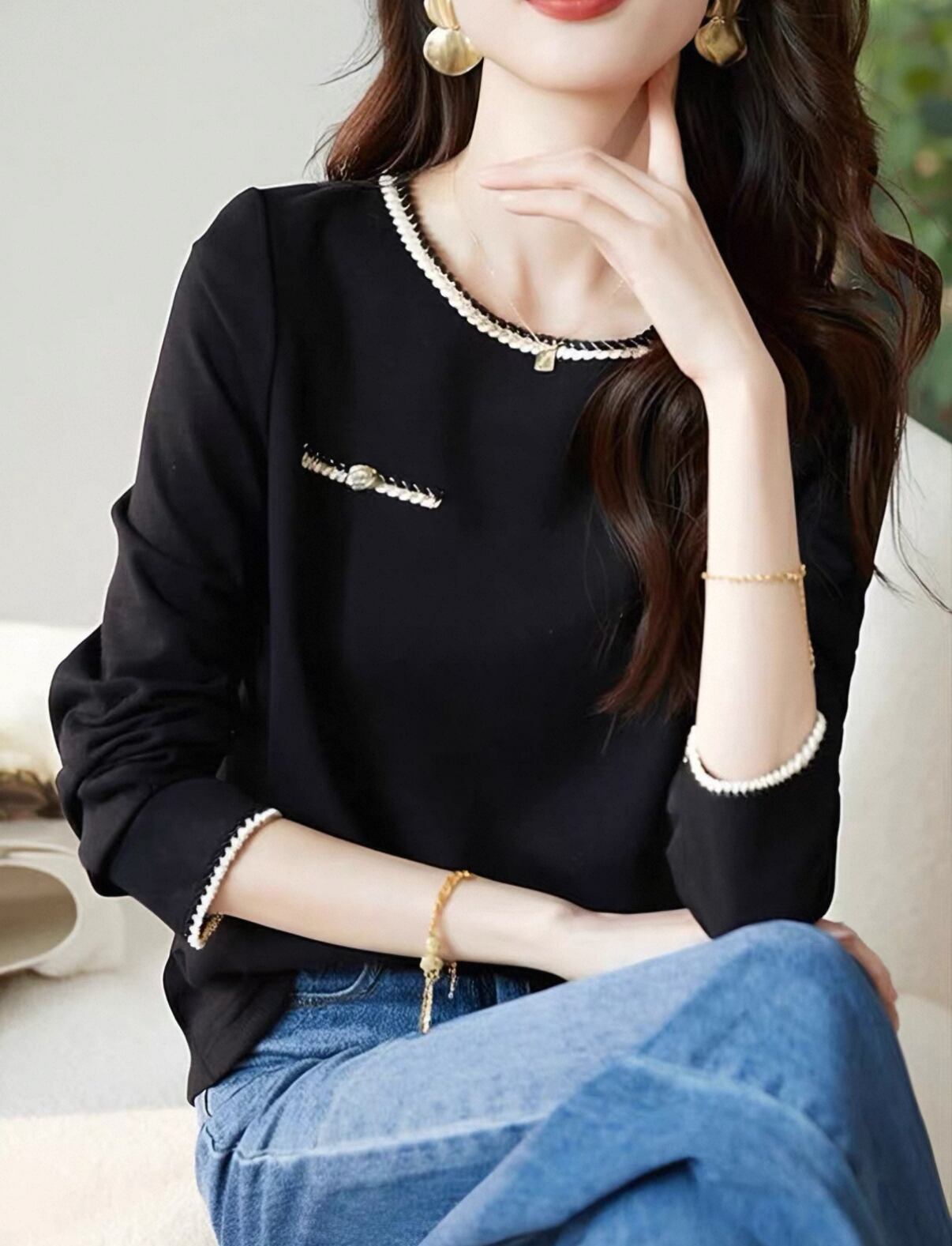 **シンプルでクールなスタイル!長袖スリムTシャツ ラウンドネック ブラックが新登場!**